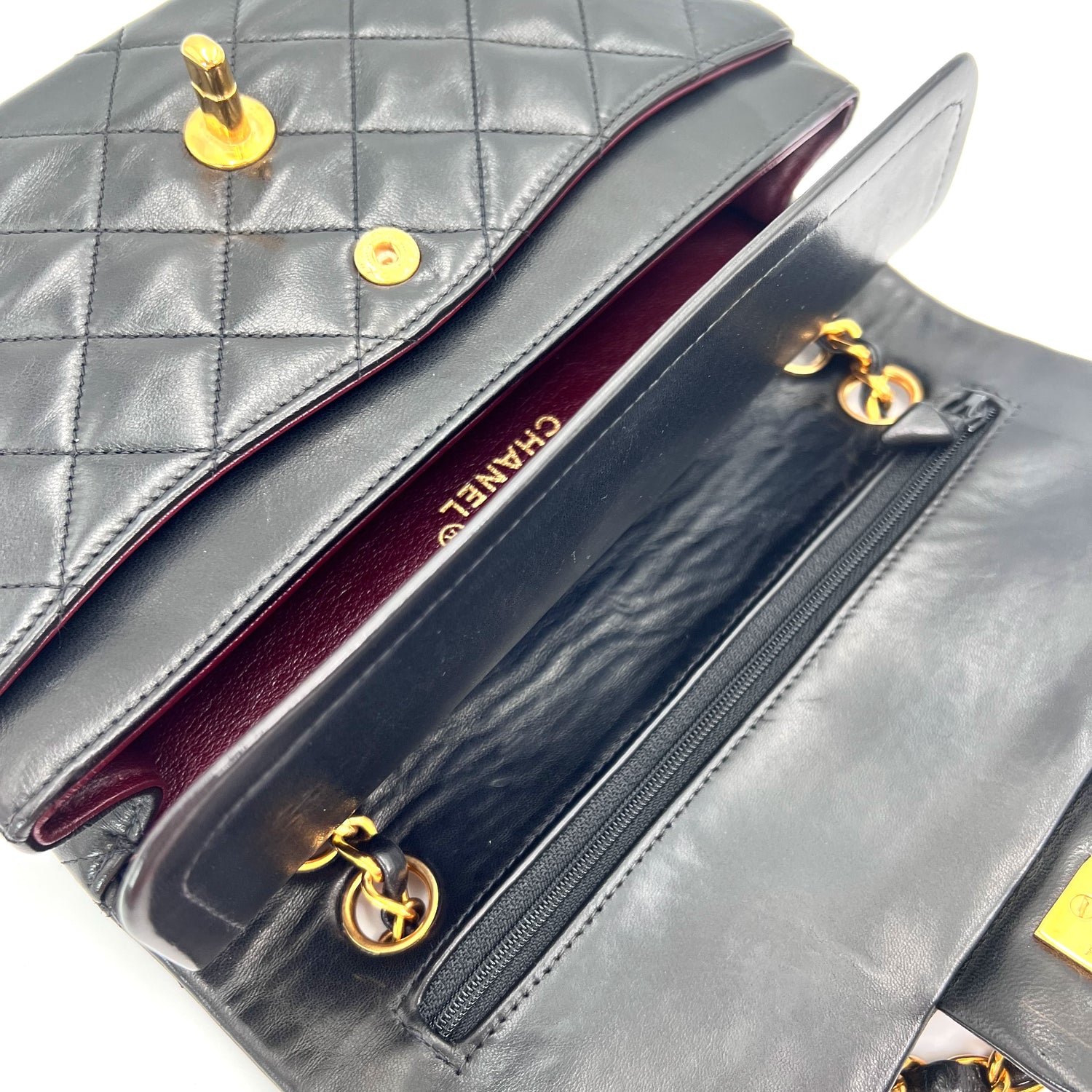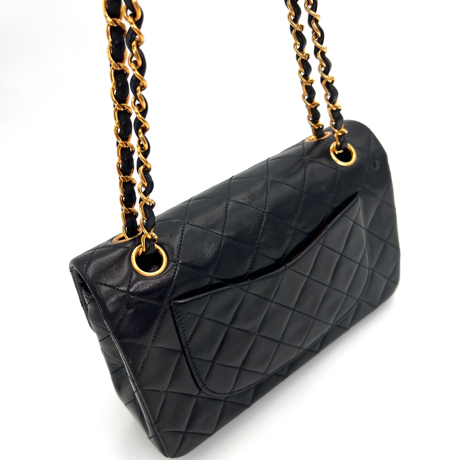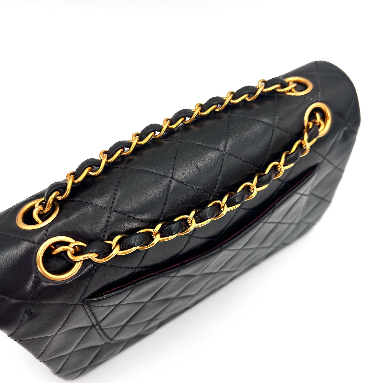 Engelbert is a vintage Chanel 3 series small classic flap black lambskin with seal only