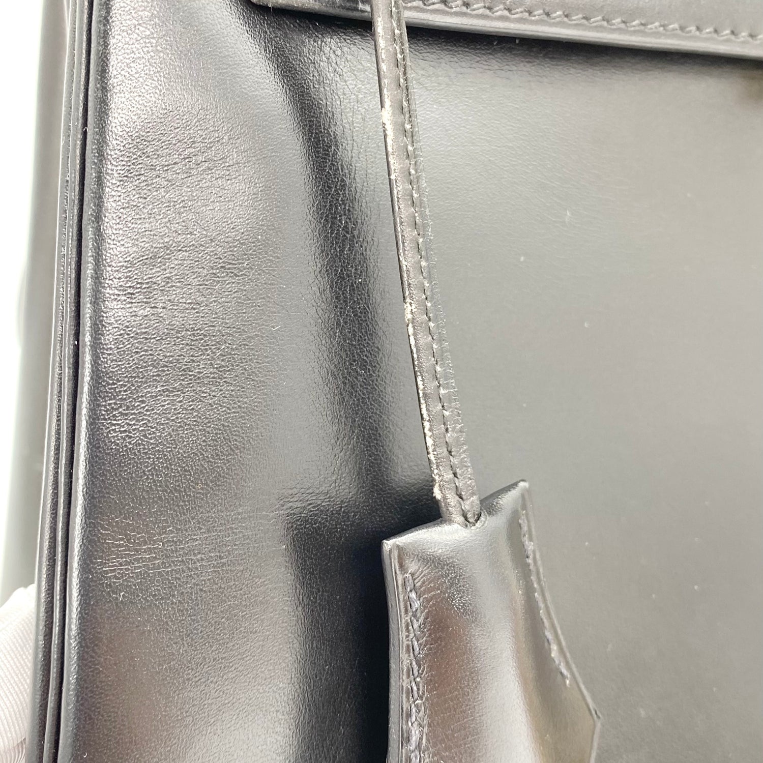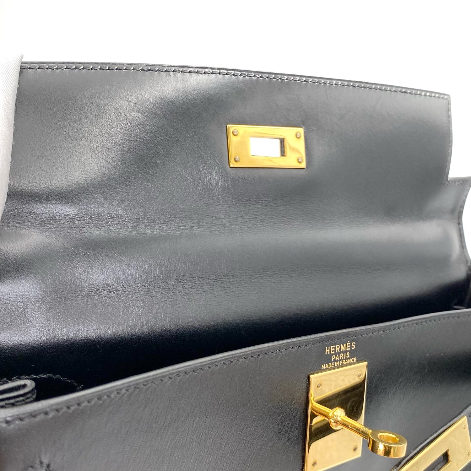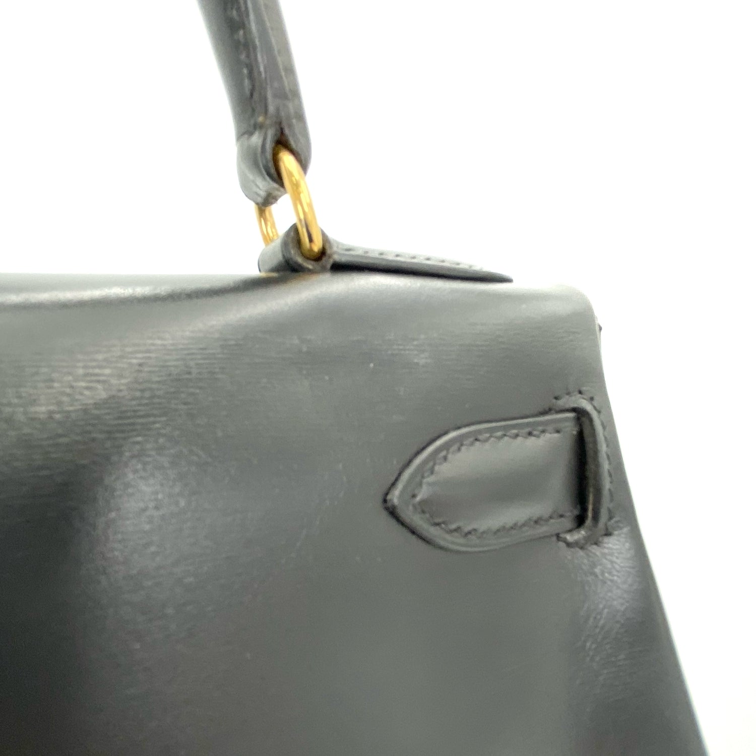 Lester is a vintage Hermès 1993 Kelly 28 Black Box Kelly Gold Hardware with stamp 〇W