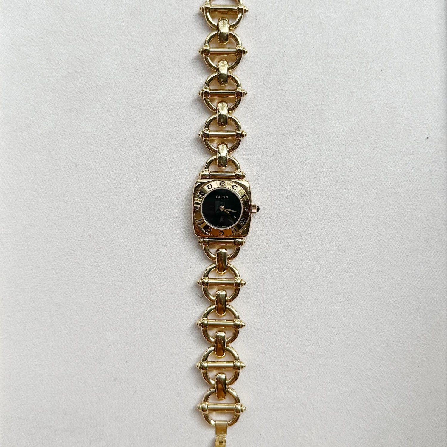 Is a Vintage Gucci Horsebite 6400L 0054321 SS QZ Black The watch comes with no accessories.