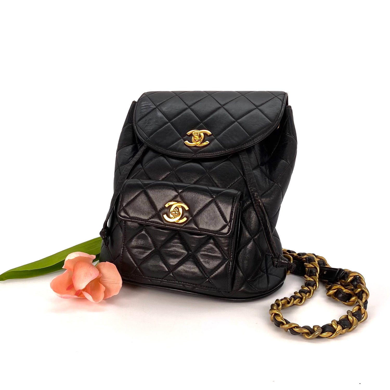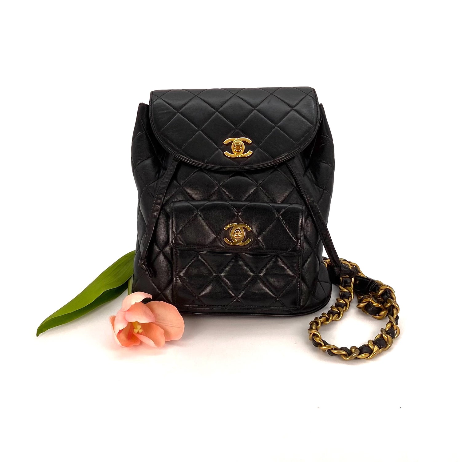 Huxley is a vintage Chanel 3 Series Matelasse Backpack Black Lambskin with seal only
