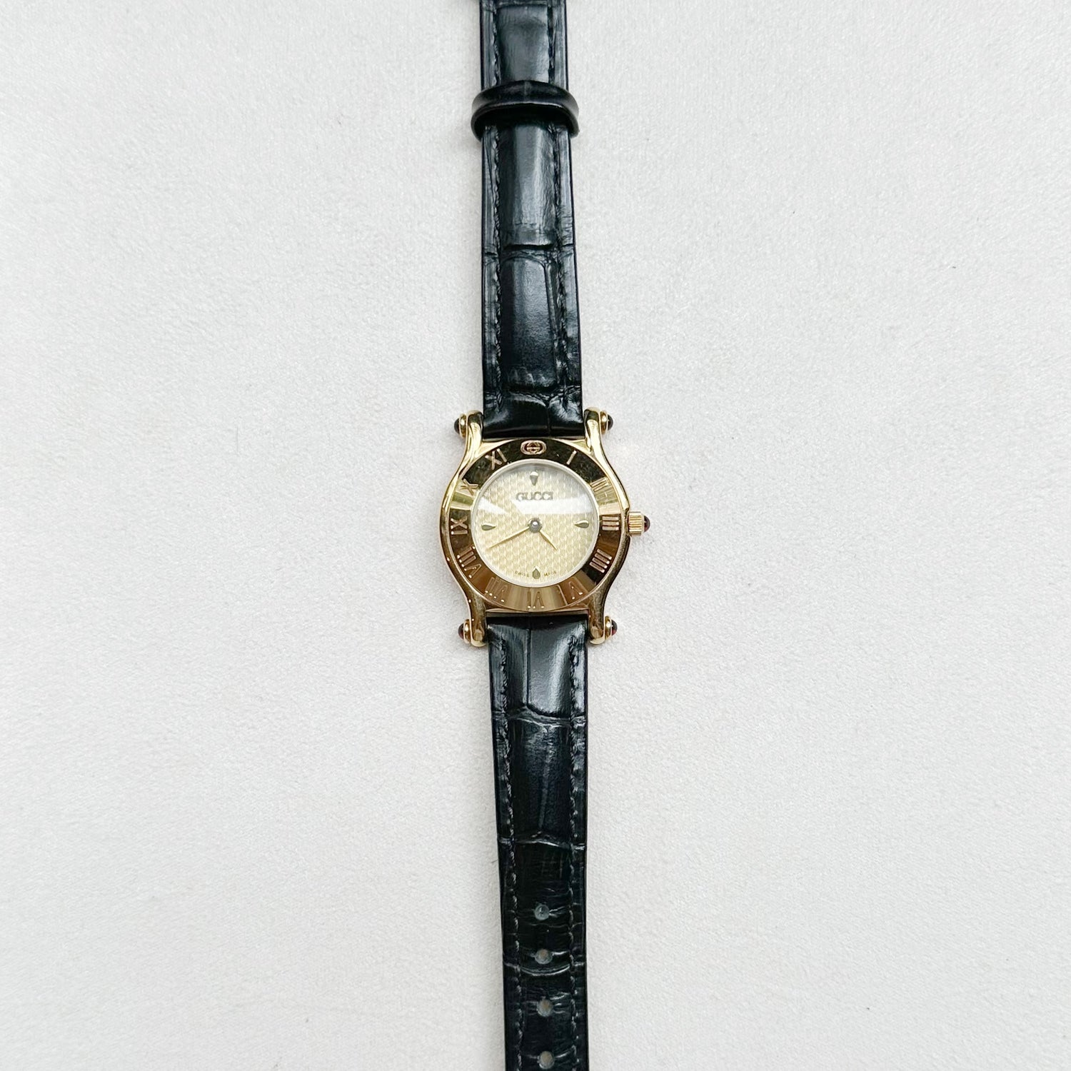 Is a Vintage Gucci 6500L 0046368 GP & leather QZ Champagne. The watch comes with no accessories.