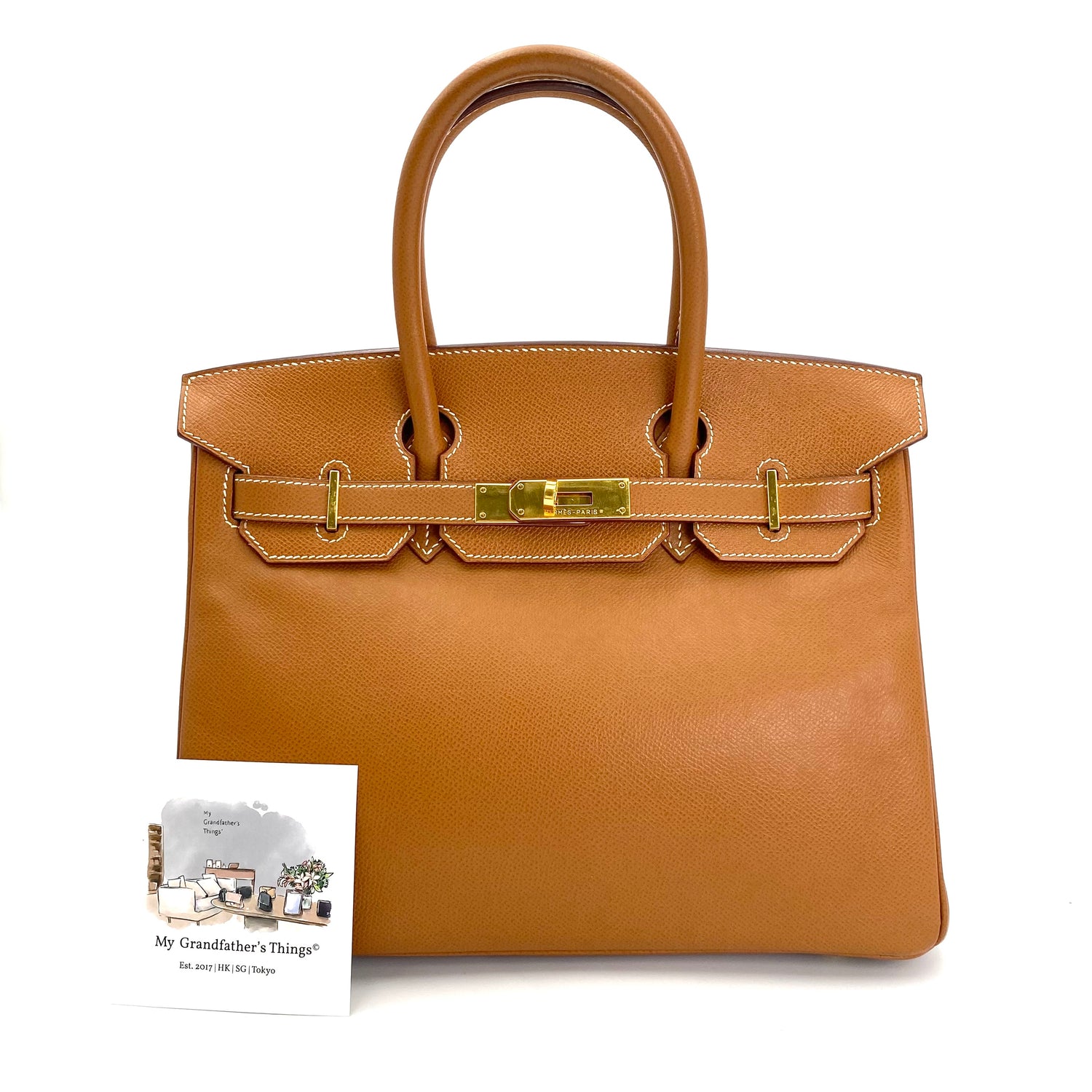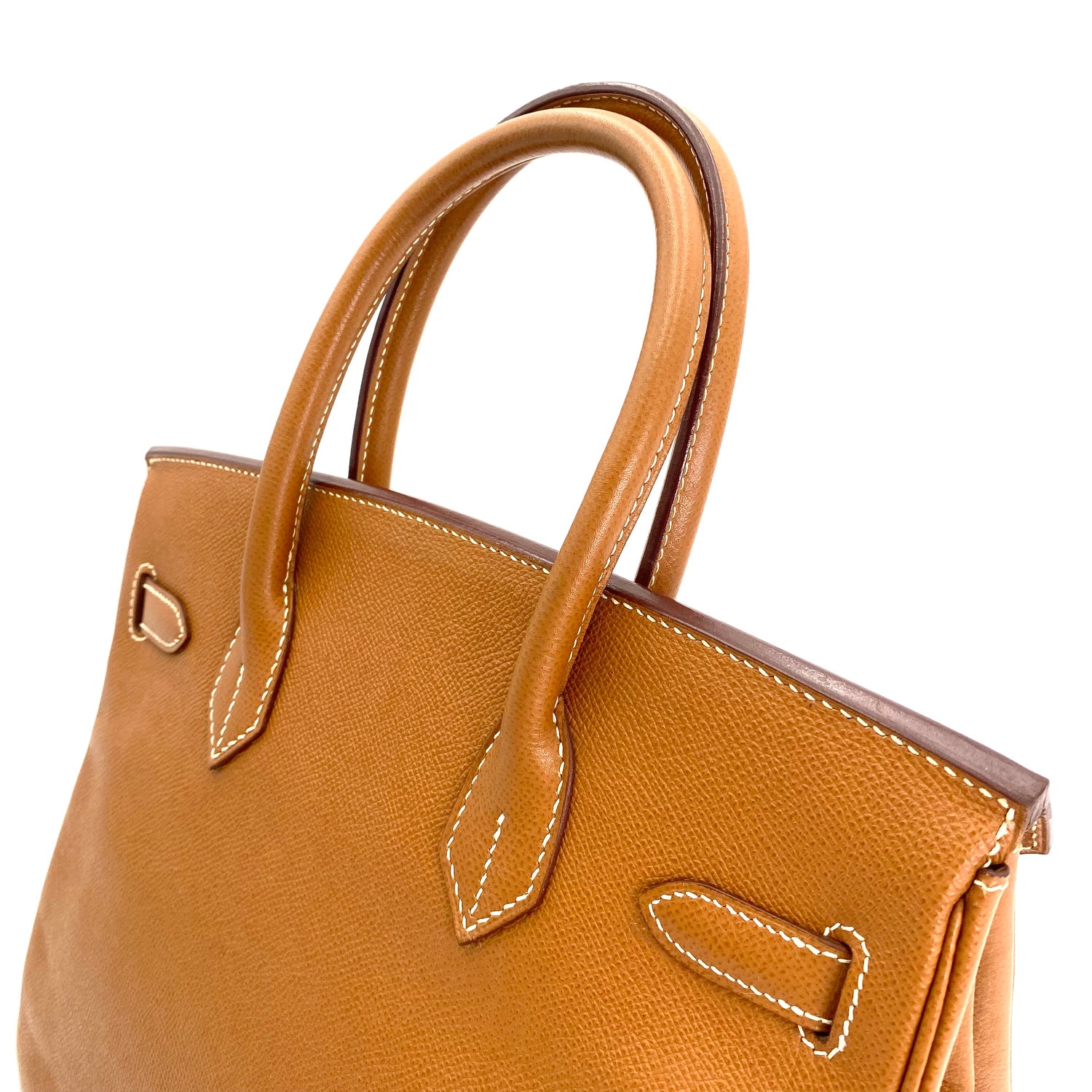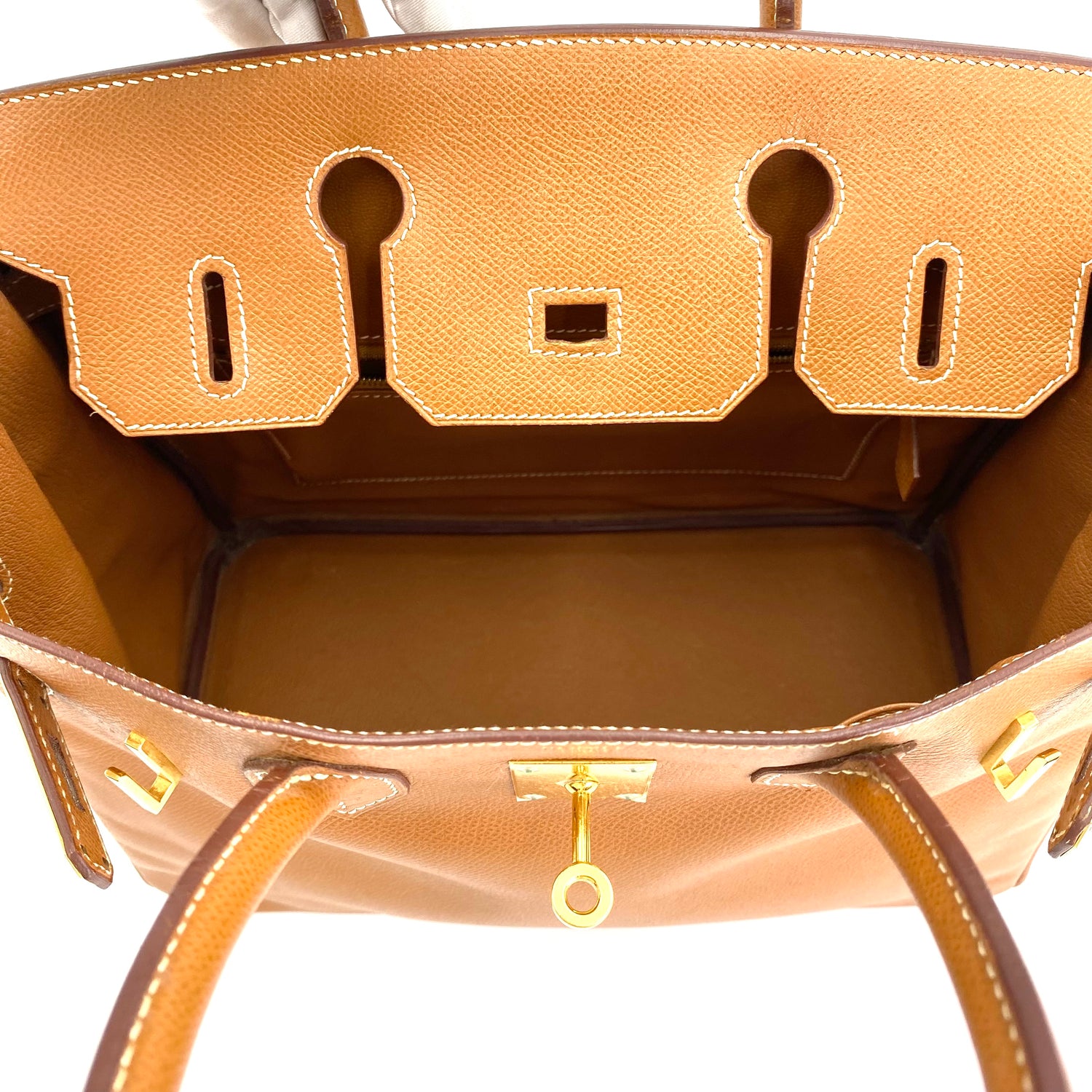 Martha is a vintage Hermes 🟥G 2003 birkin 30 gold courchevel leather with chain, clochette, and key