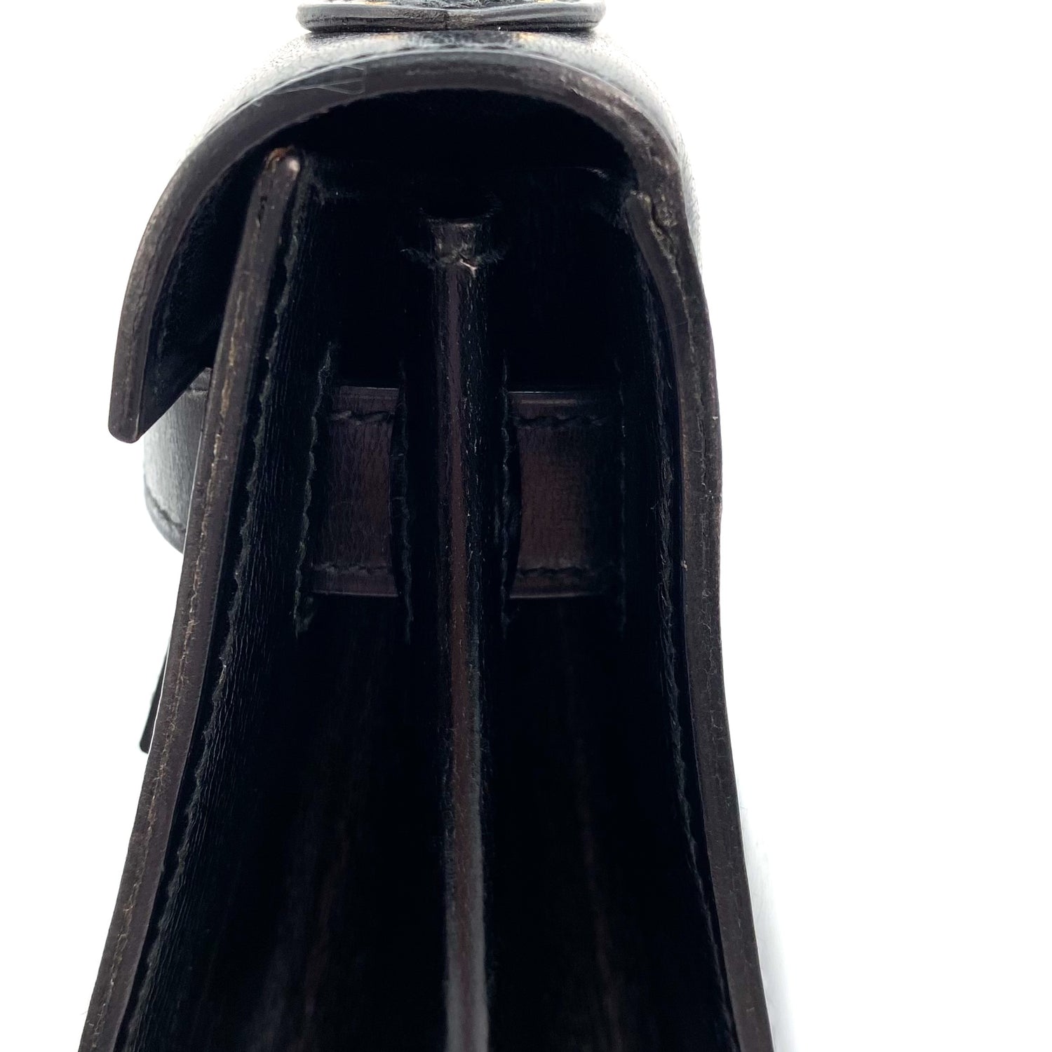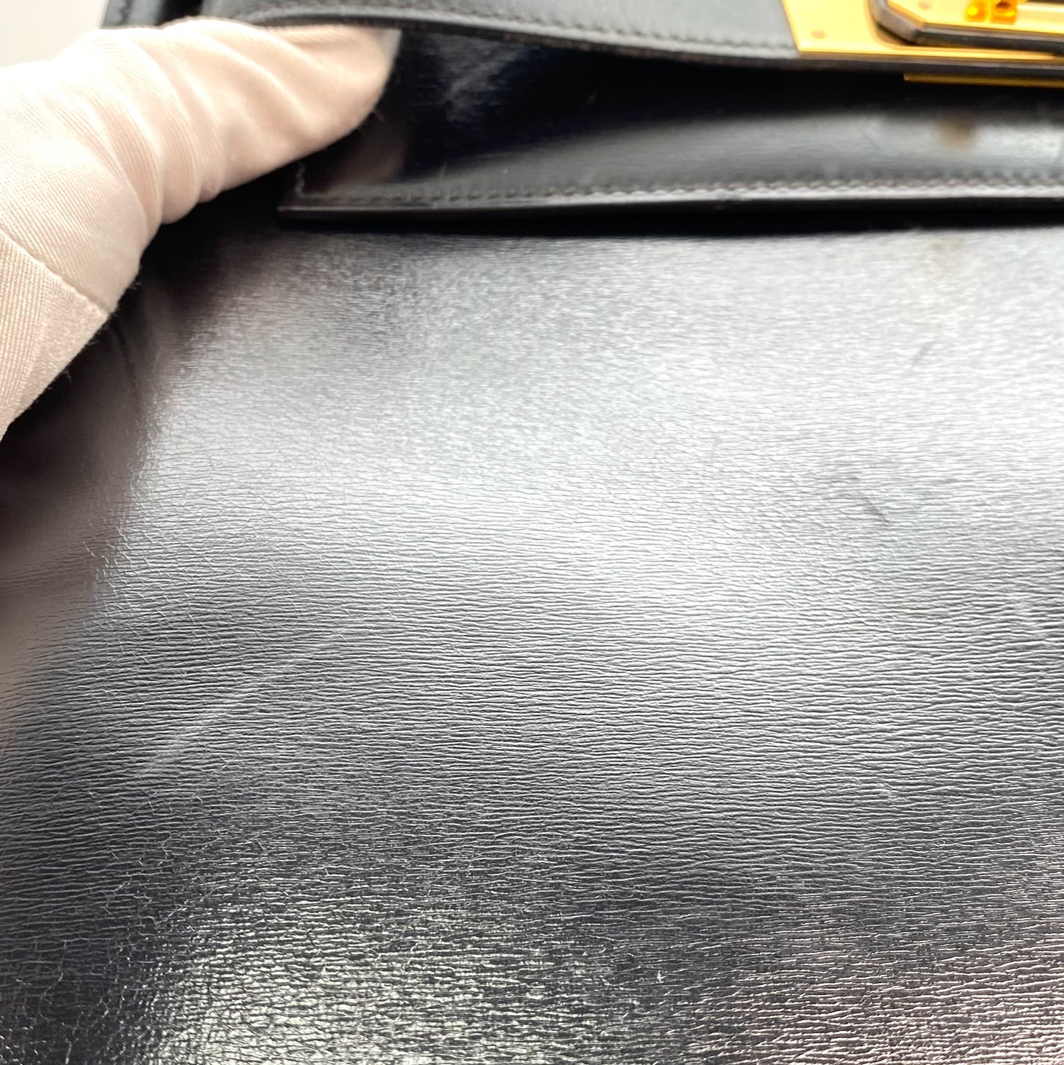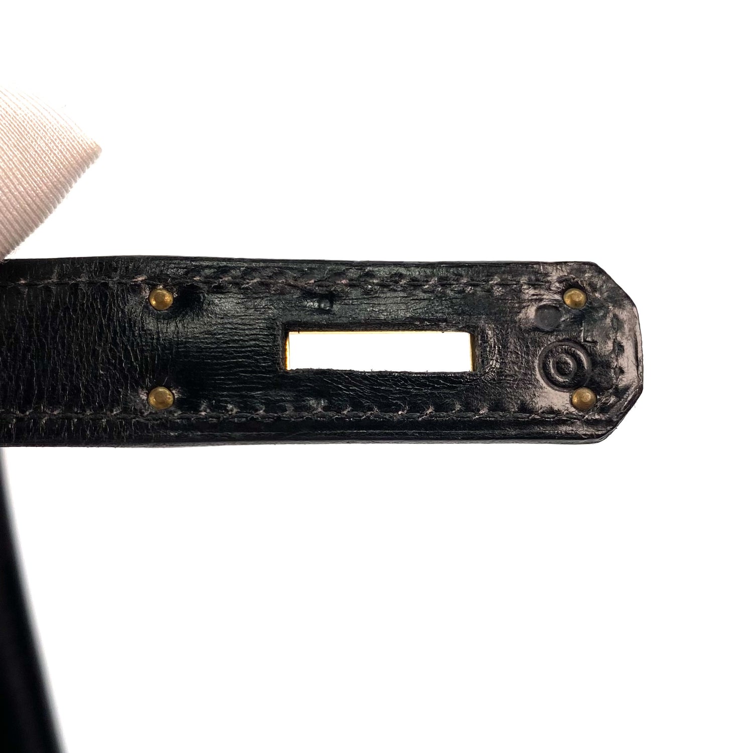 Tirza is a Hermès 1985 Kelly 28 Sellier Black Boxcalf Gold Hardware with stamp 〇O.