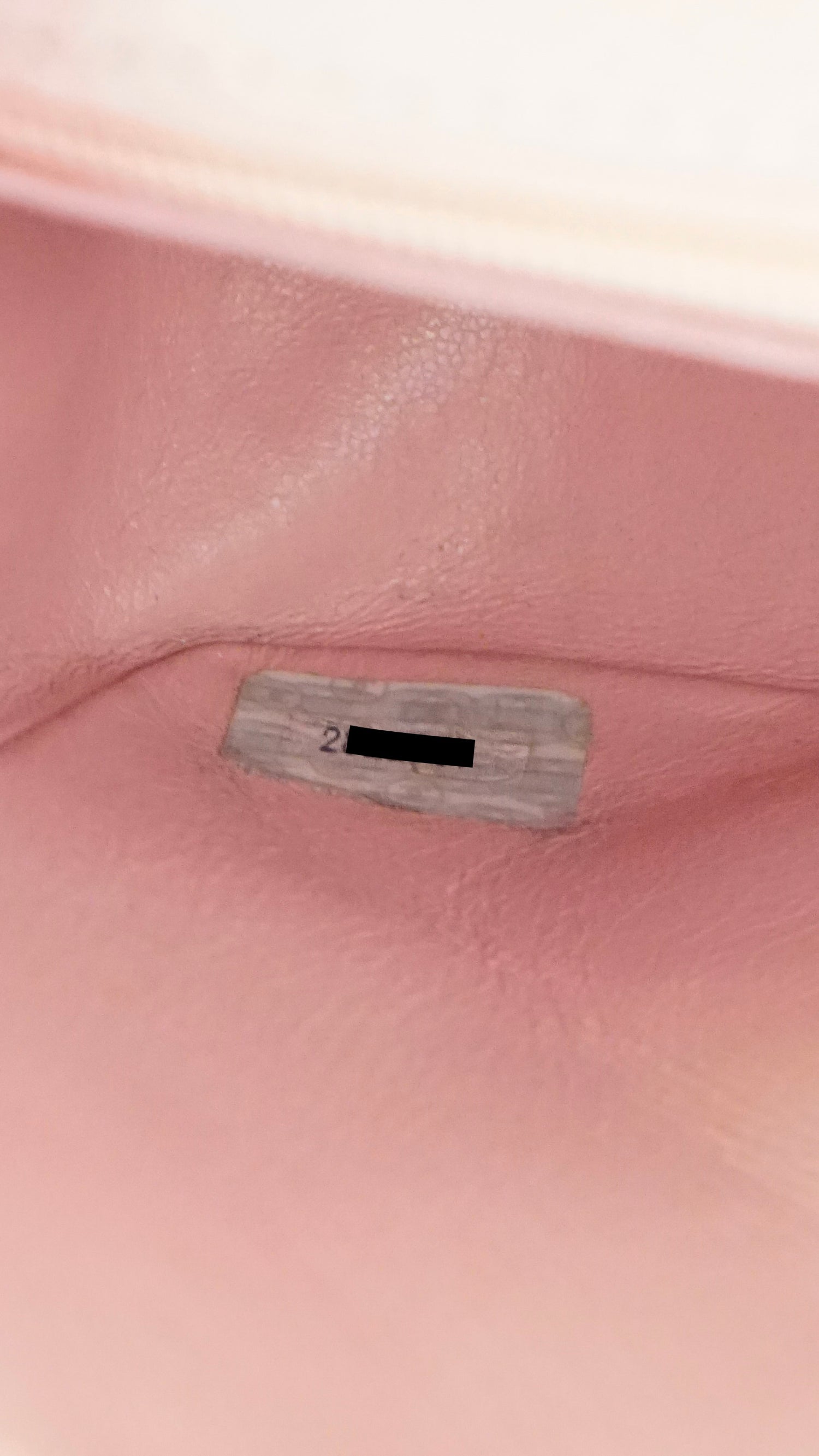 Asher is a vintage Chanel small Diana light pink caviar with seal only