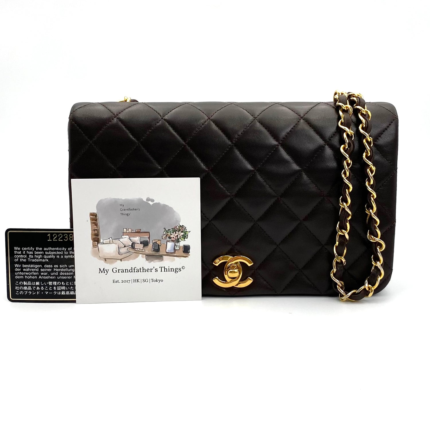 Bijou is a vintage Chanel 1 series full flap chain brown lambskin with card and seal