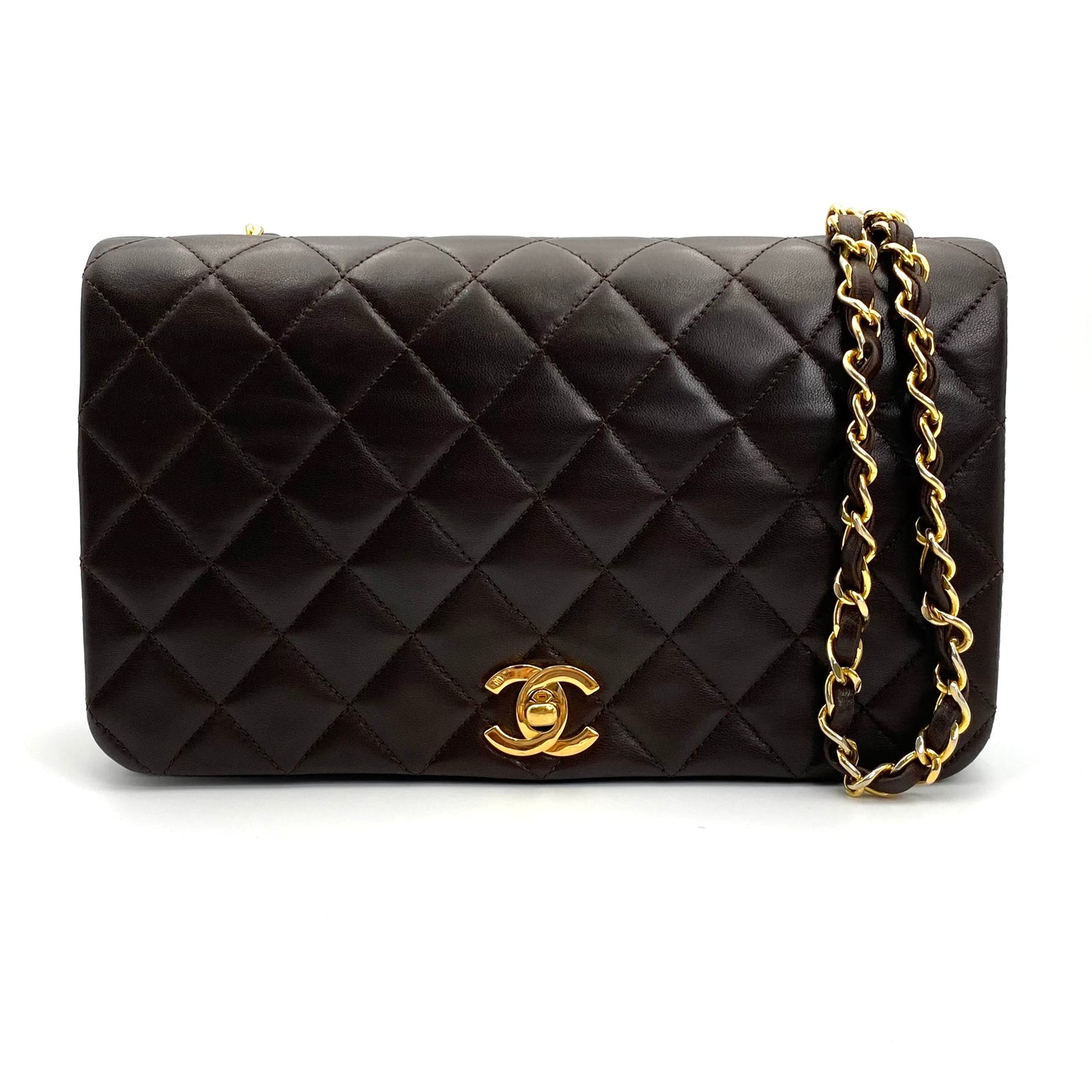Bijou, Vintage Chanel 1 series Full Flap Chain Brown Lambskin with card and seal