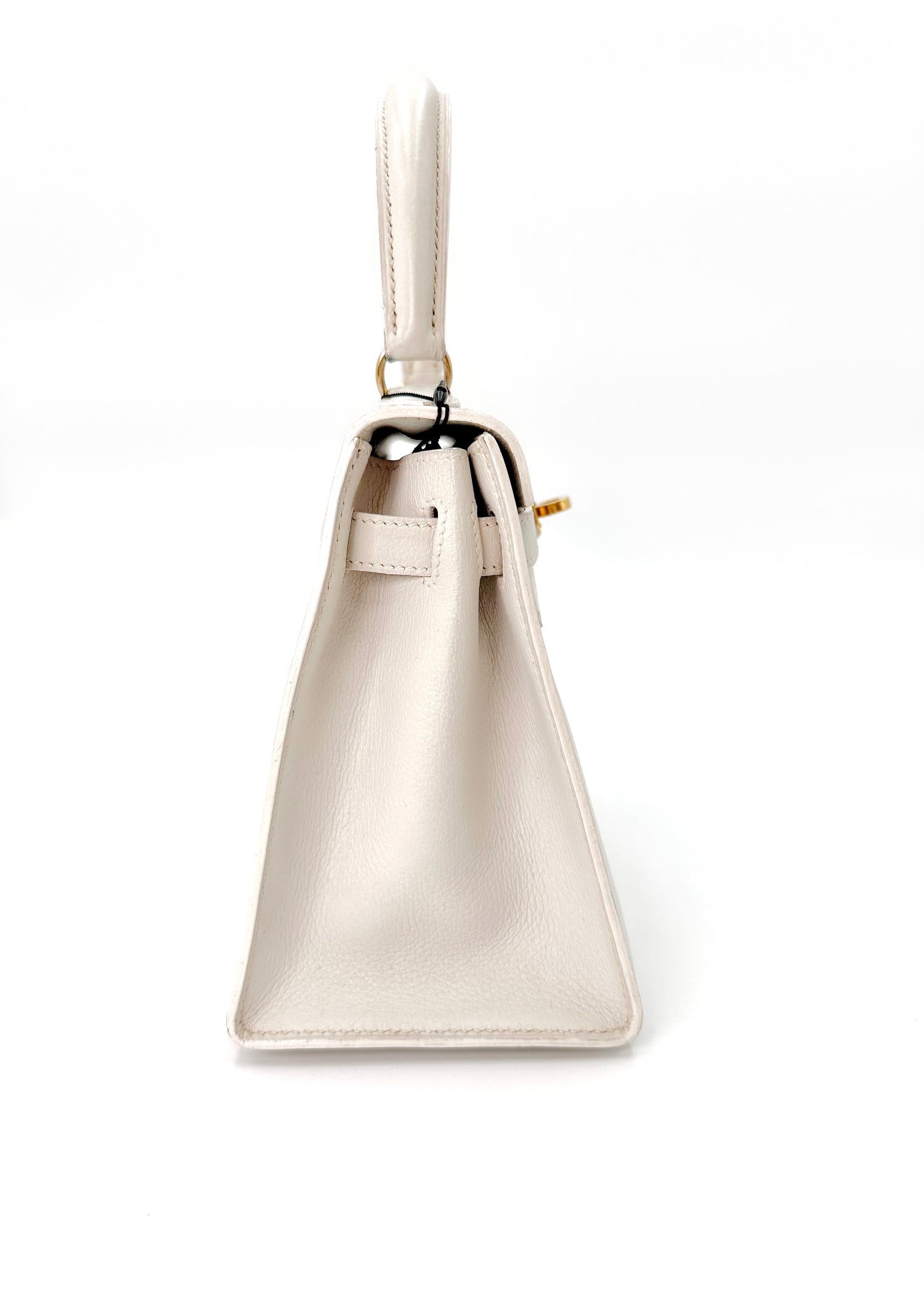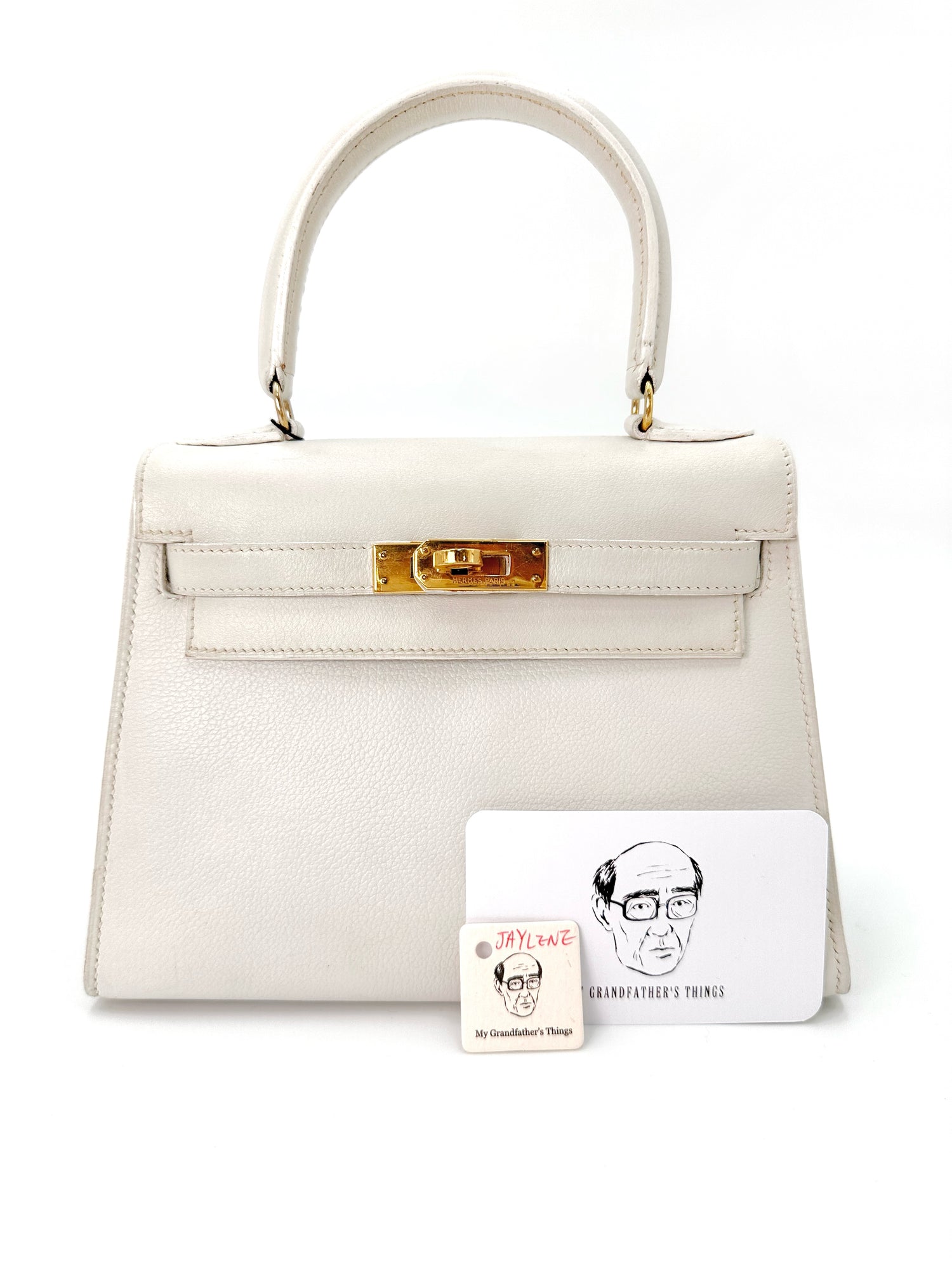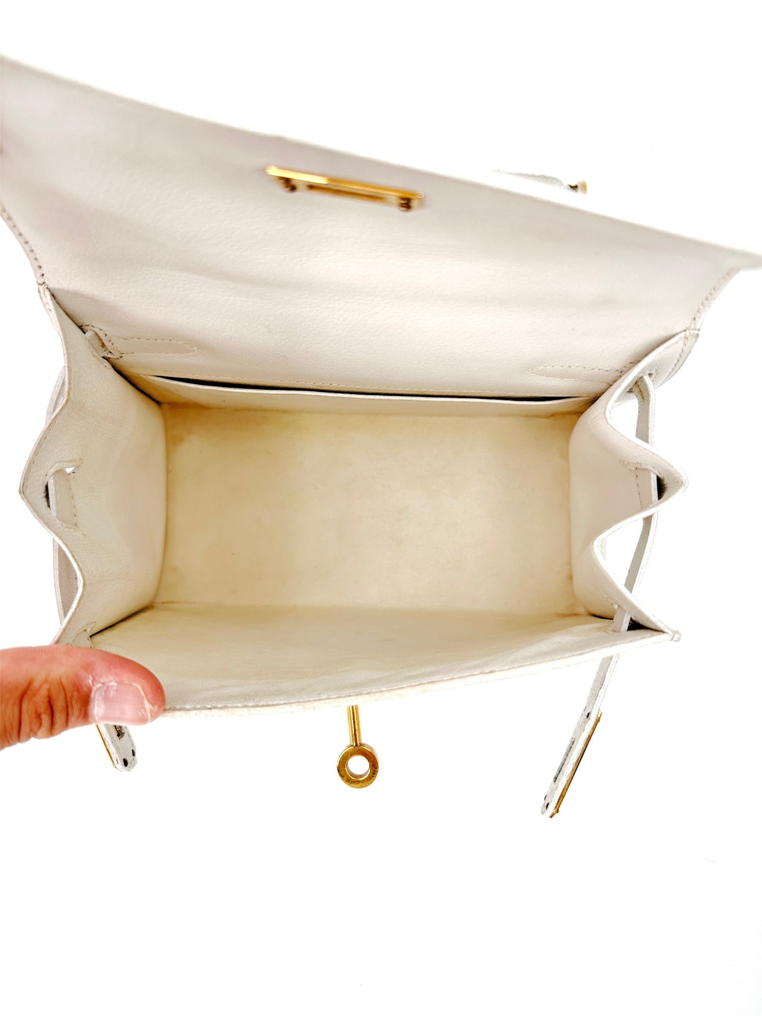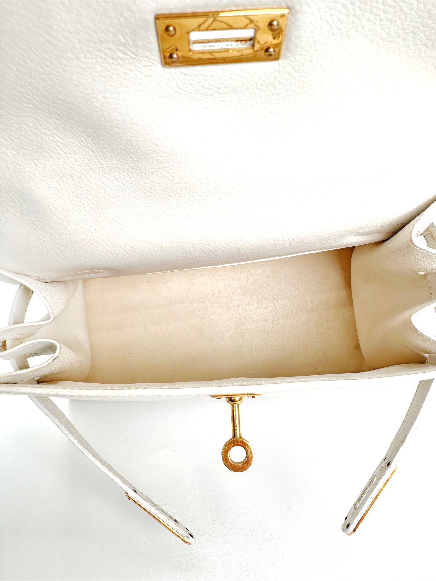 Fumiko, Vintage Authentic Hermes ⭕O 1985 kelly 20 white courchevel with strap