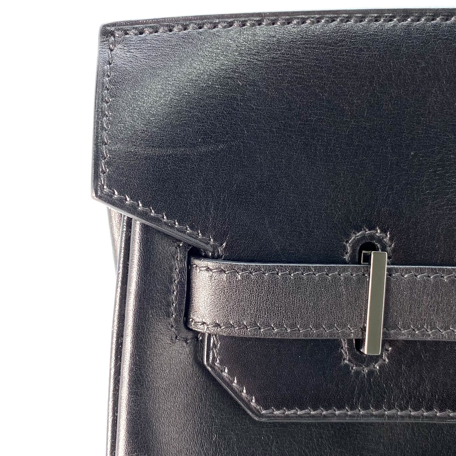 Haya is a vintage Hermès 2003 Haut A Courroies 32 Black Box Calf SIlver Hardware with stamp □G