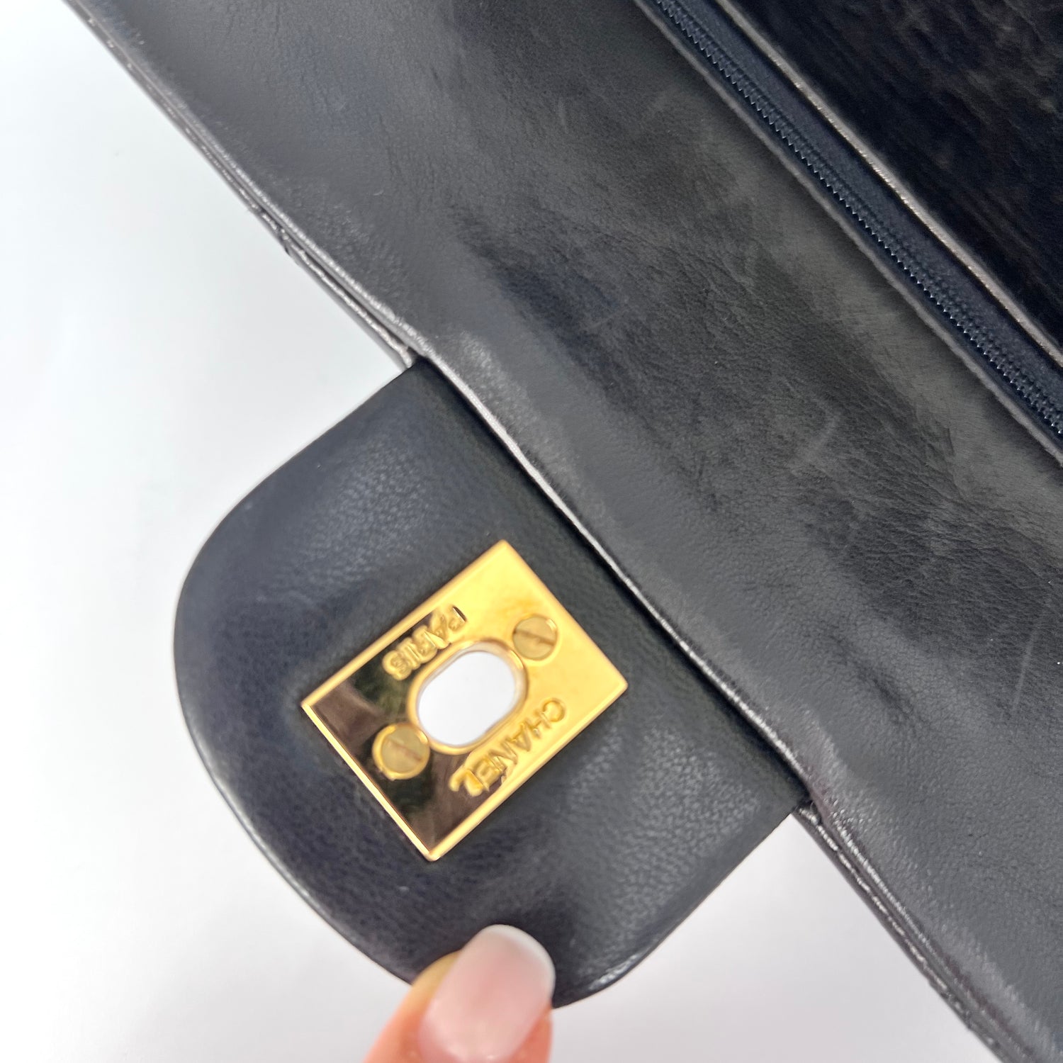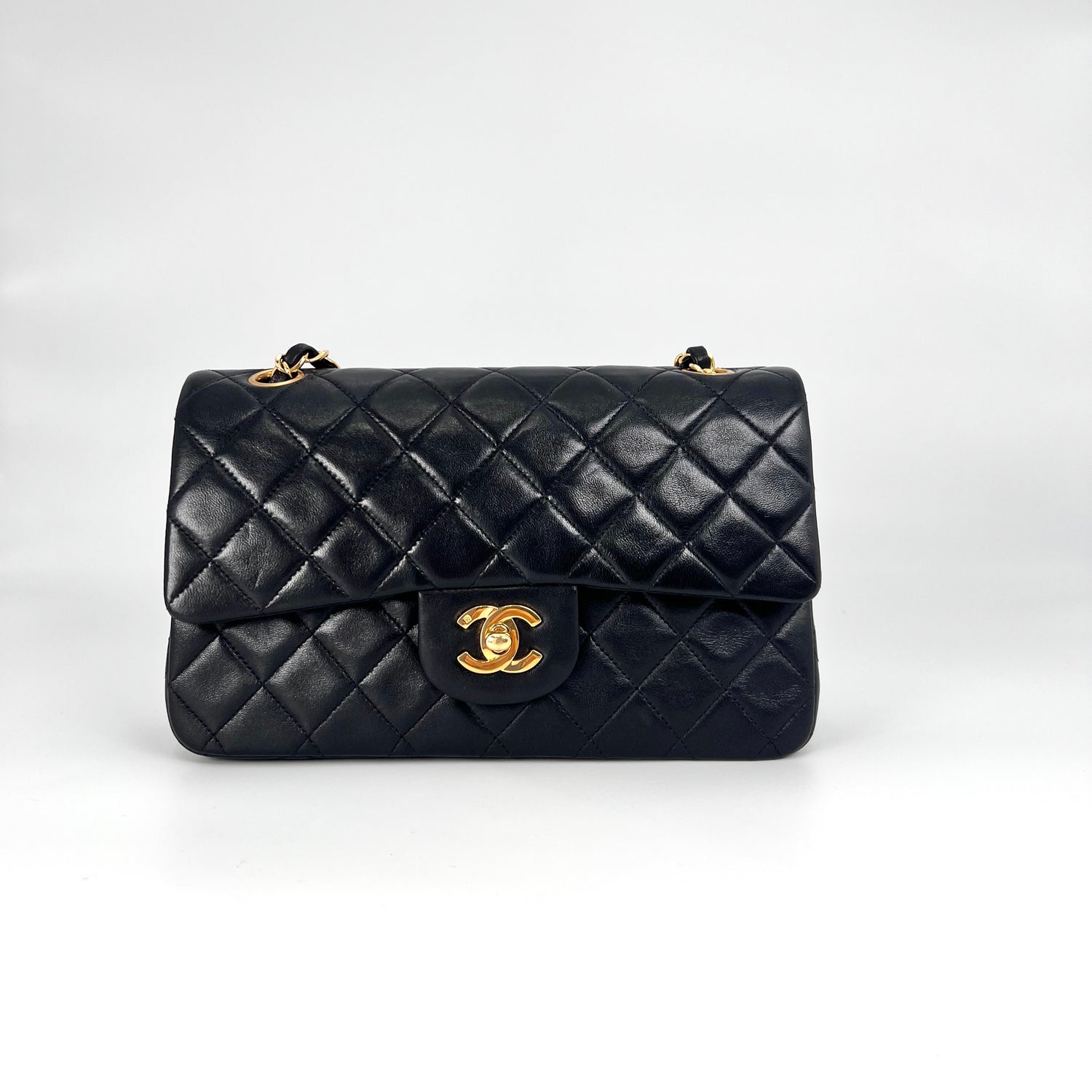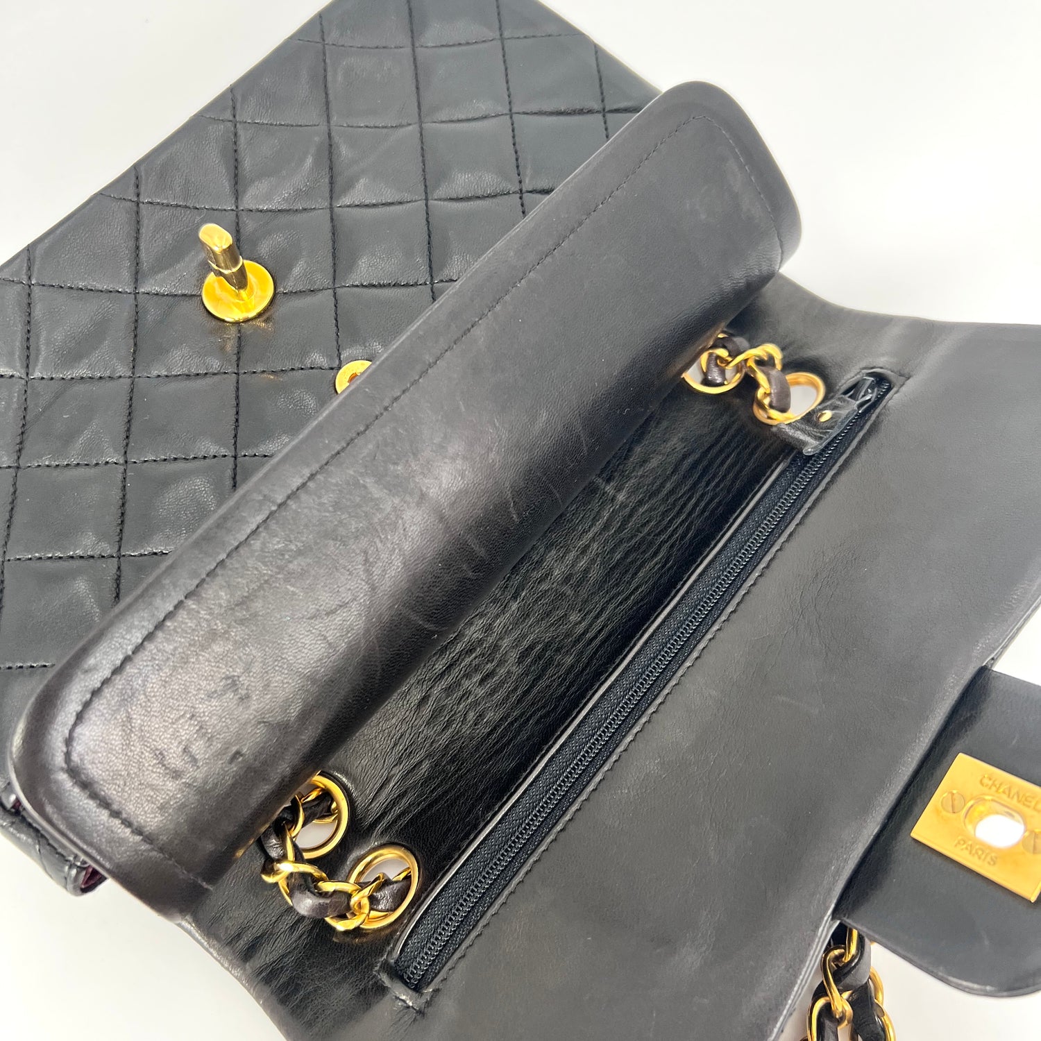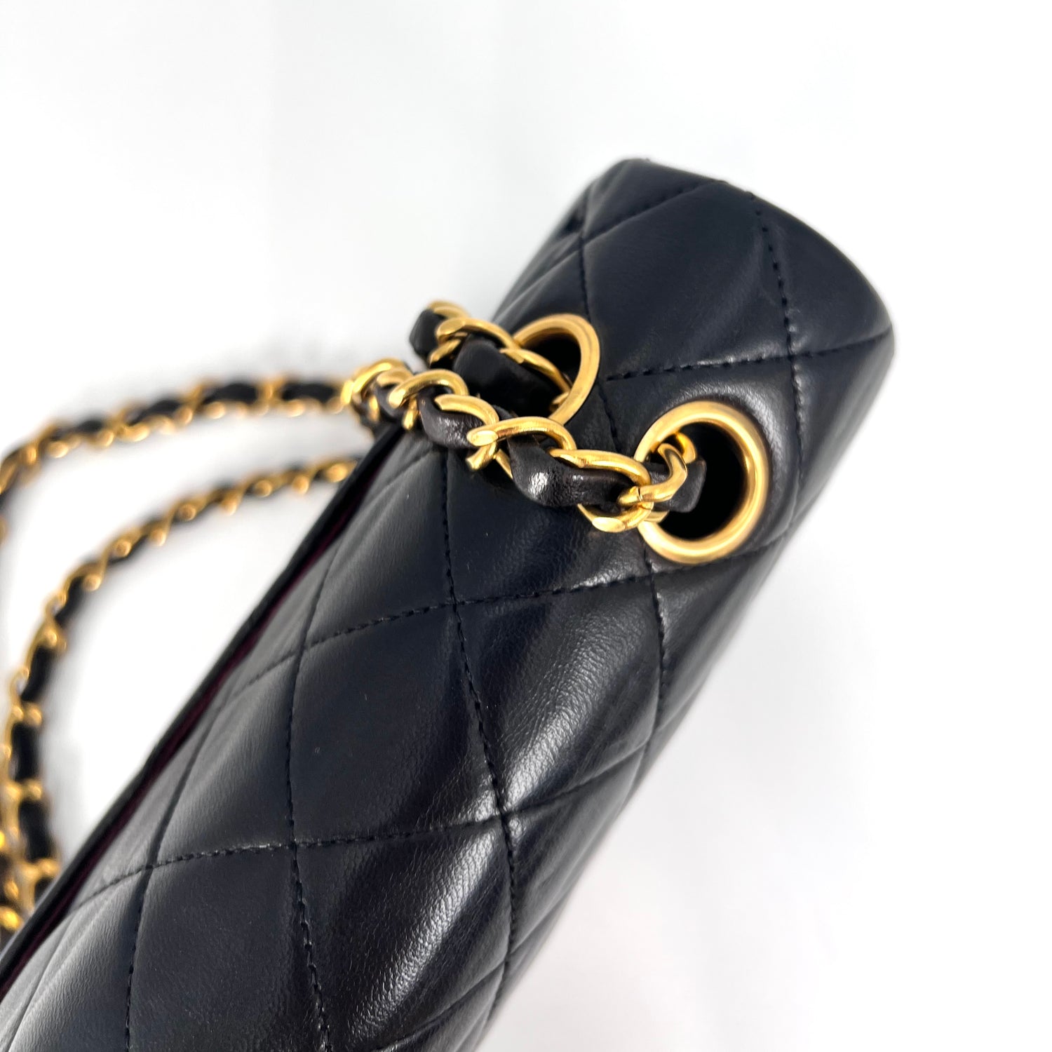Hercules is a vintage Chanel 3 series small classic flap black lambskin with seal and card.