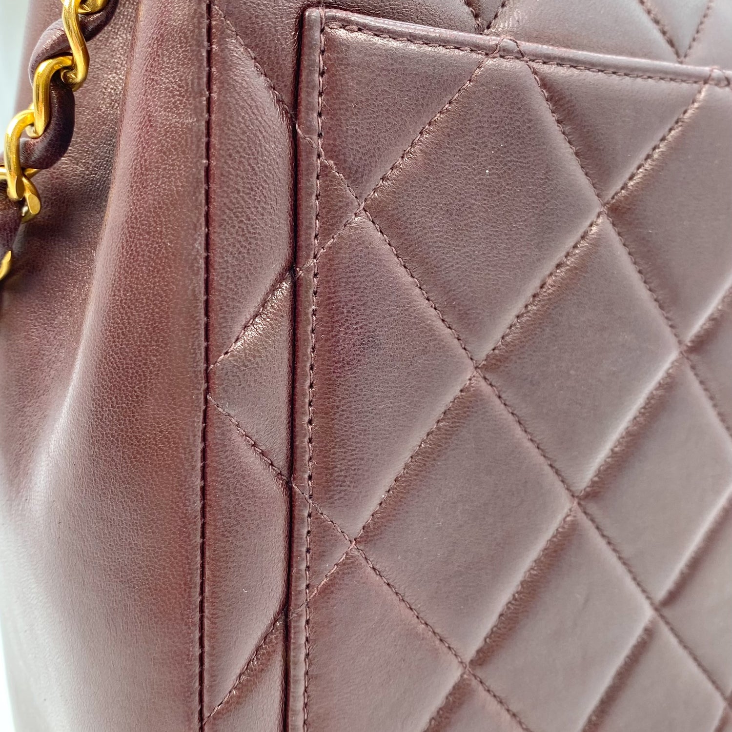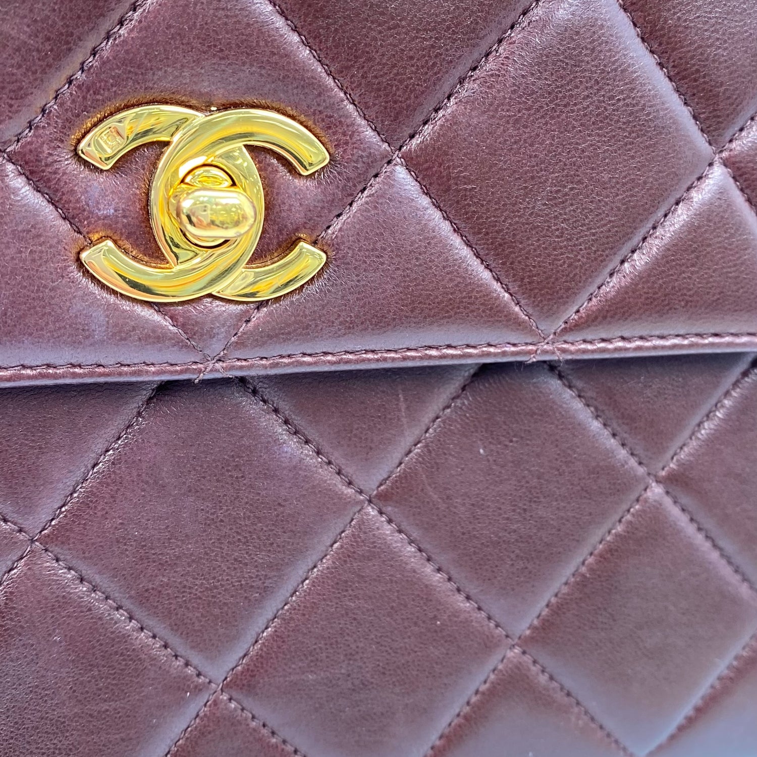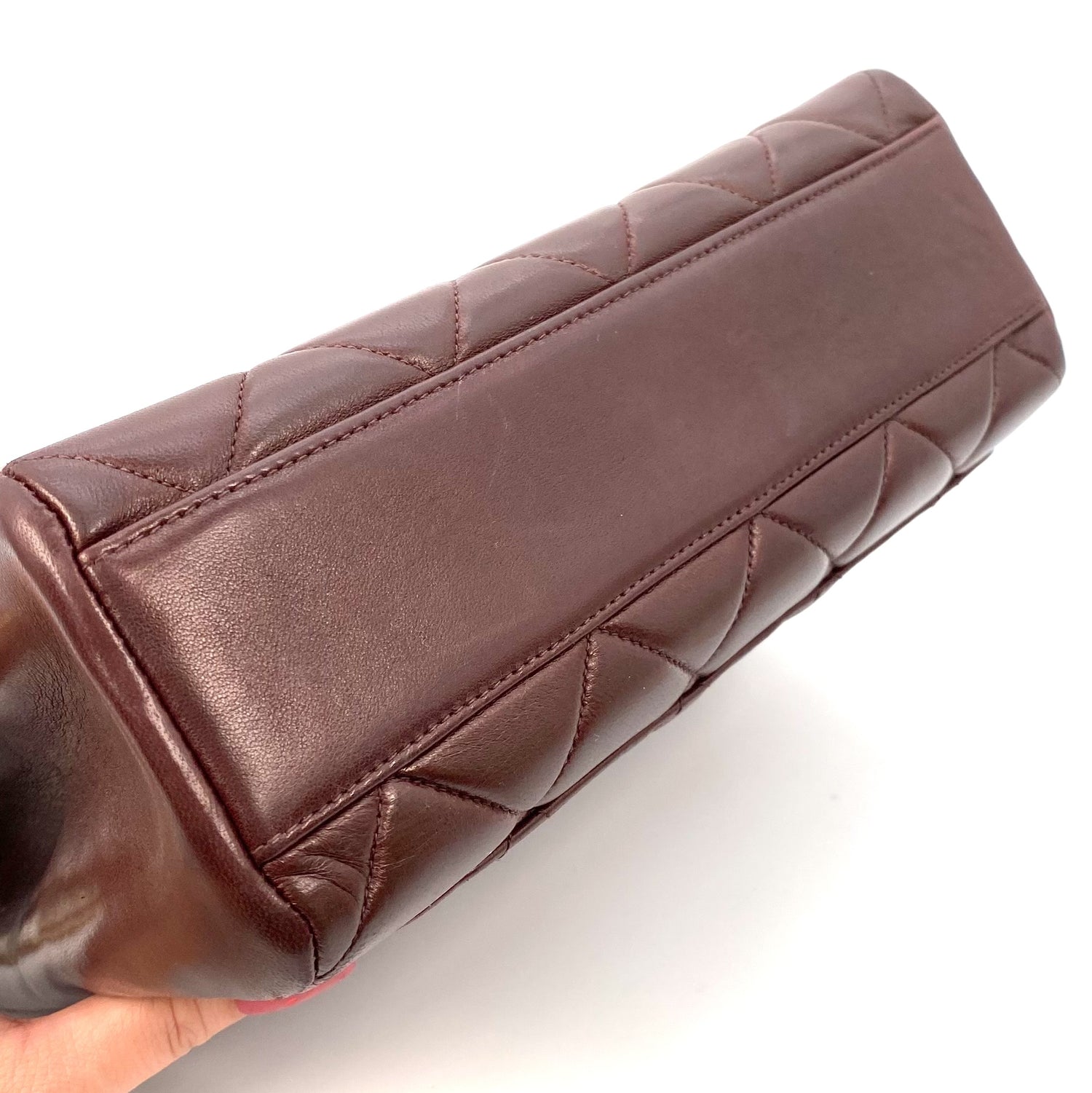 Jasper is a vintage Chanel 4 Series 23cm Square Dark Brown Mini Lambskin with seal and card
