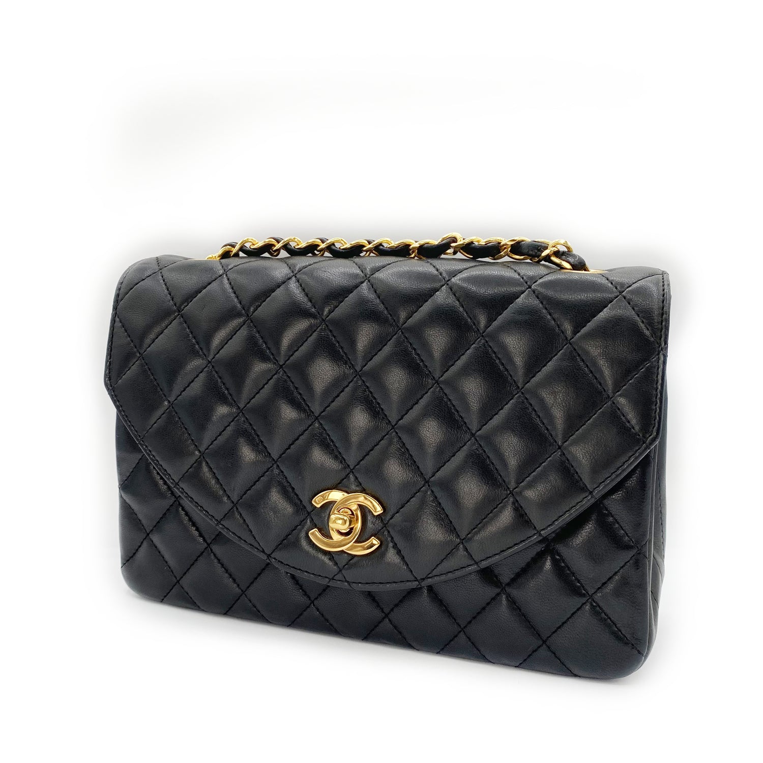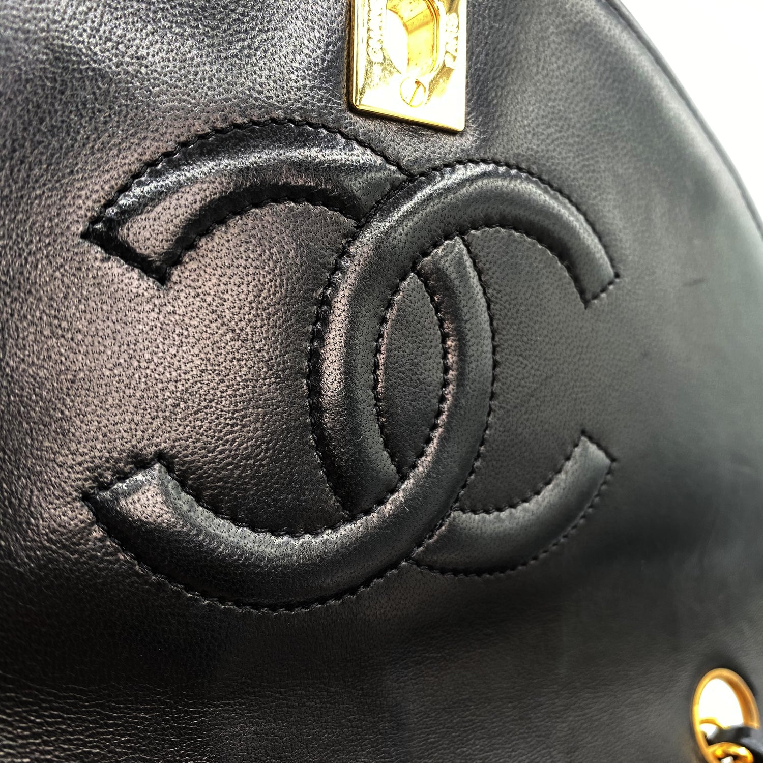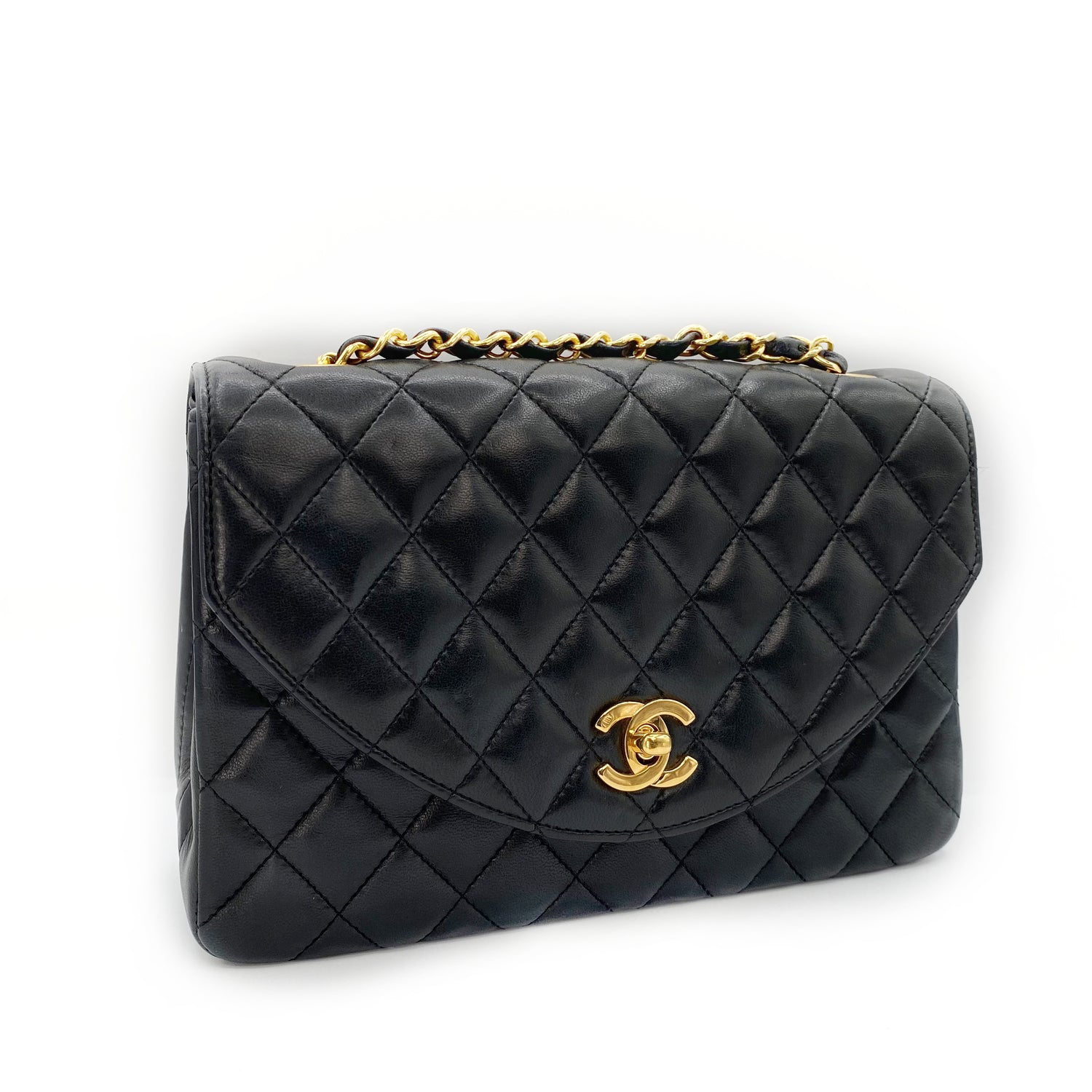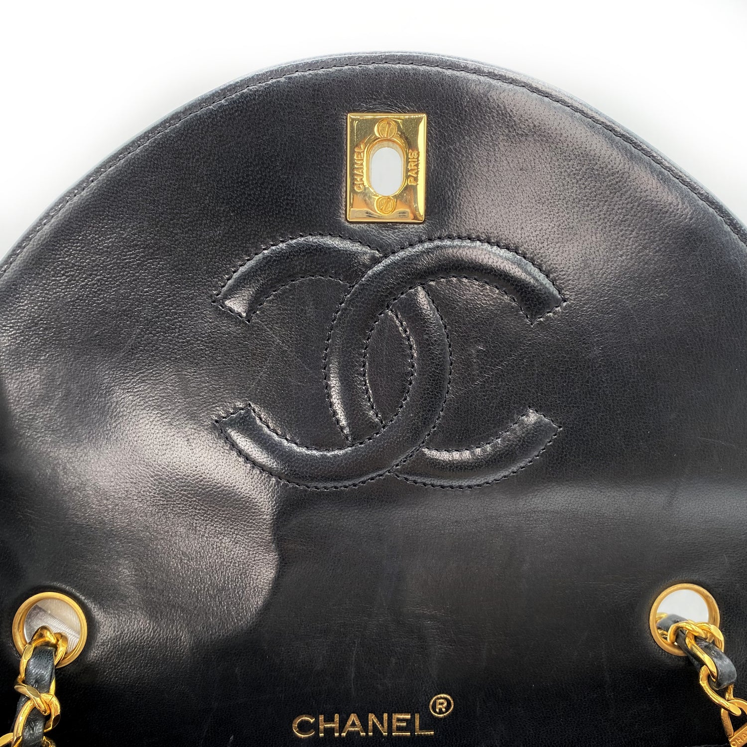 Julio is a vintage Chanel 1 series matelasse half moon chain black lambskin with seal and card