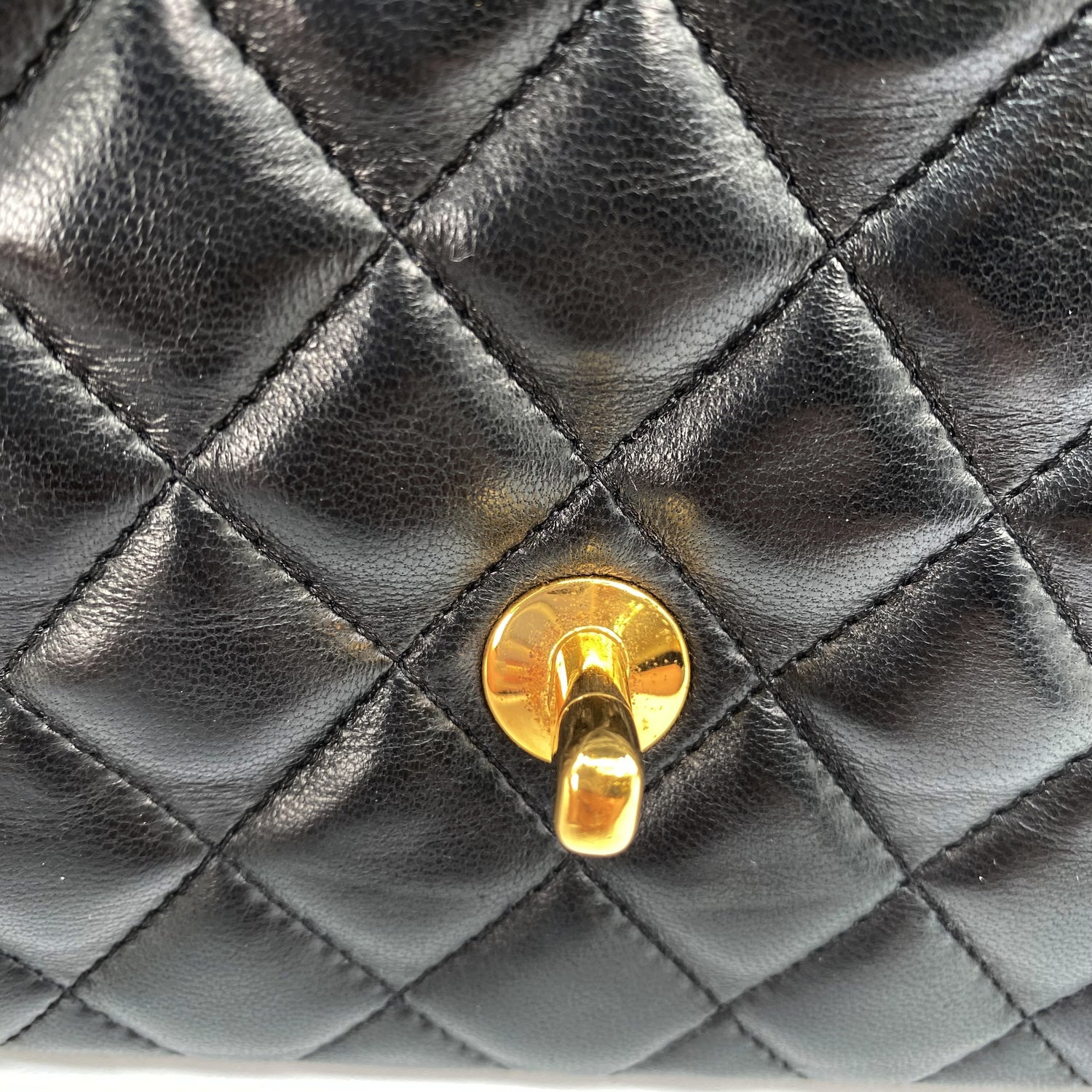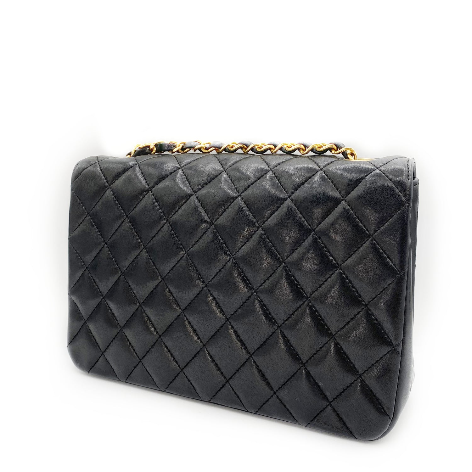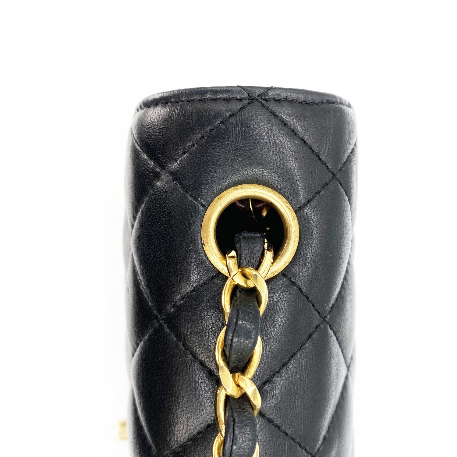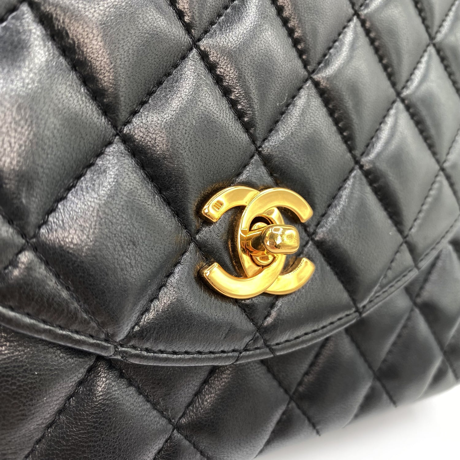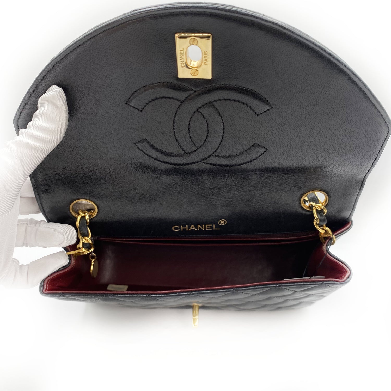 Julio is a vintage Chanel 1 series matelasse half moon chain black lambskin with seal and card