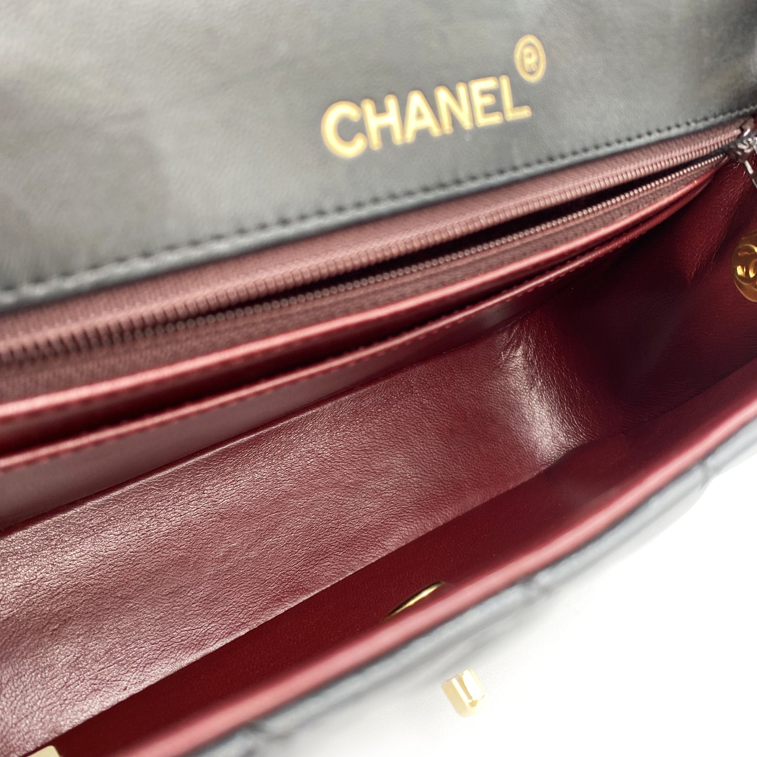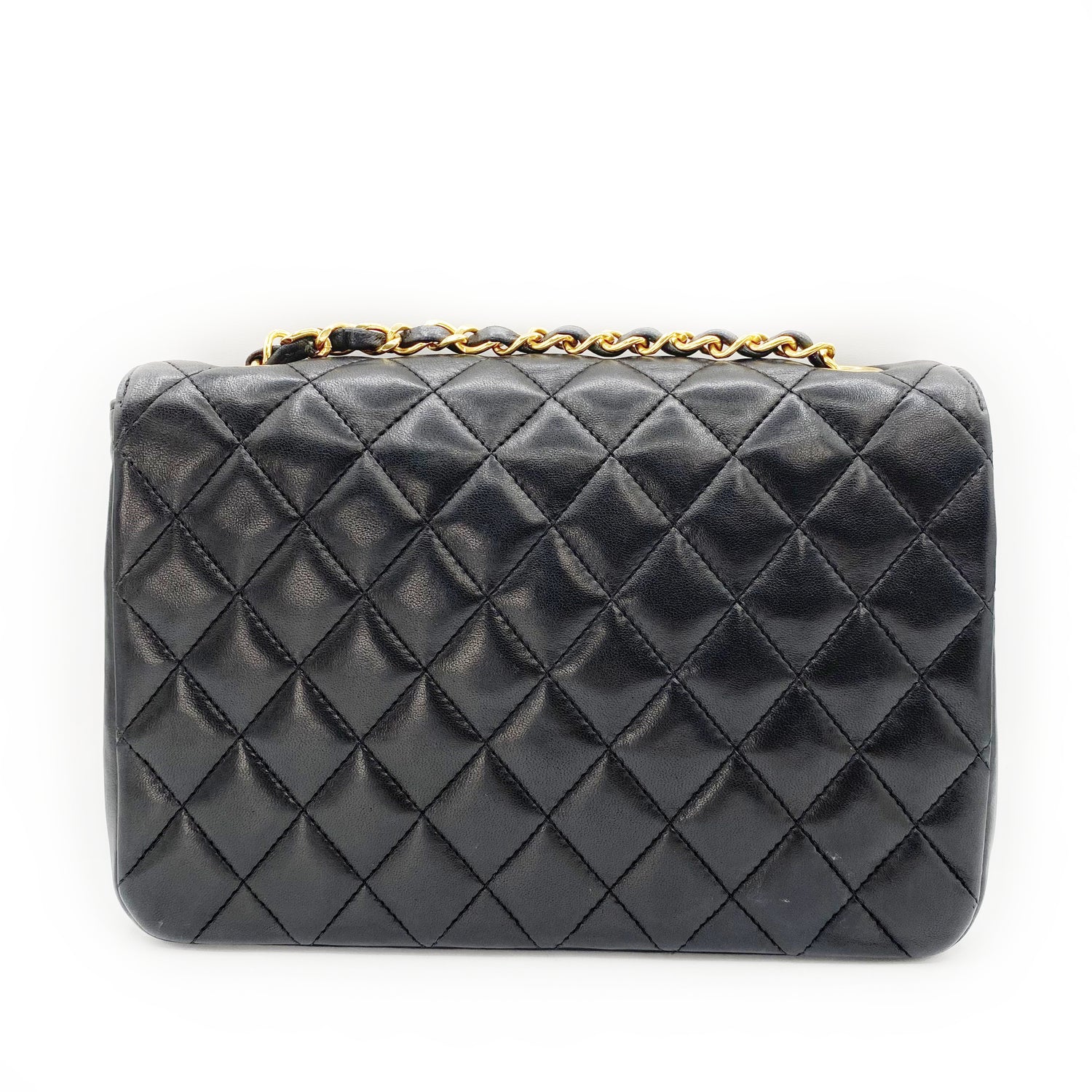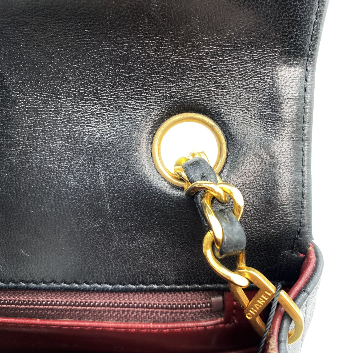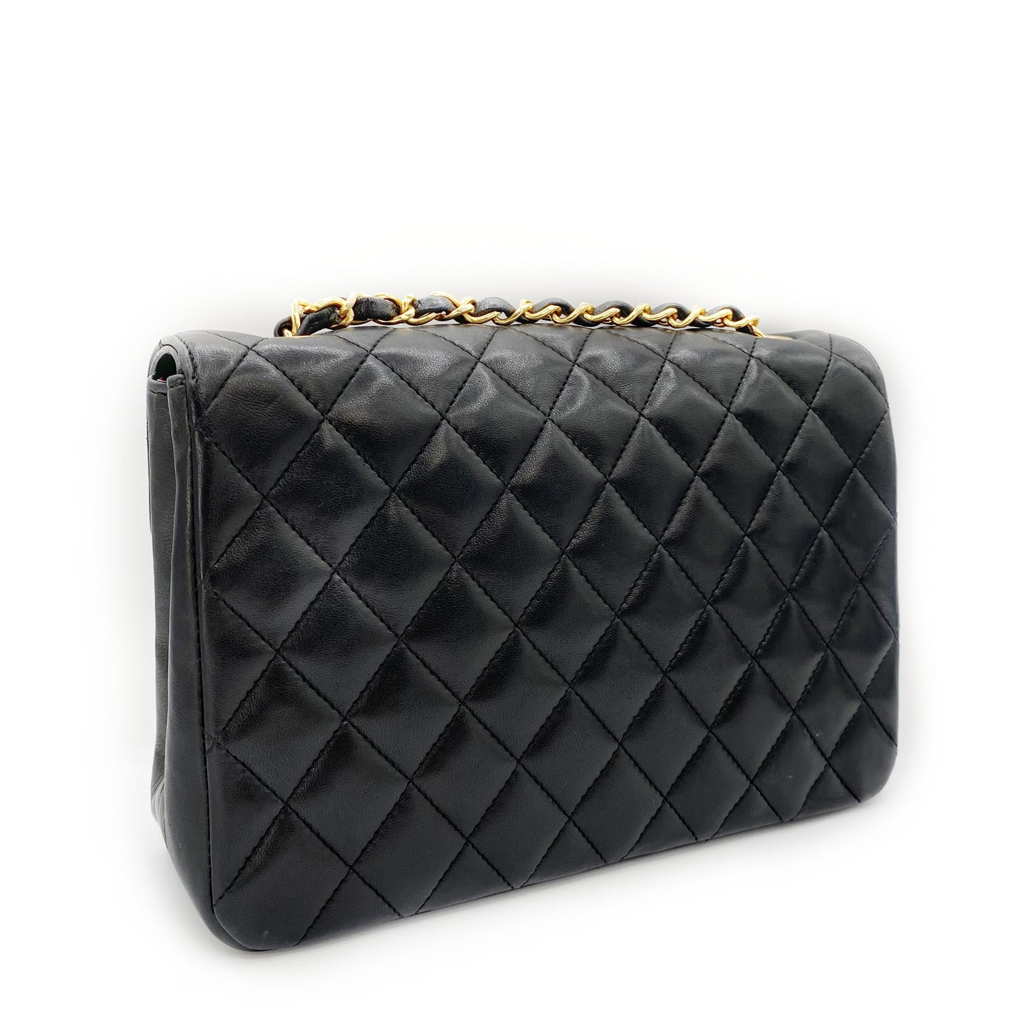 Julio is a vintage Chanel 1 series matelasse half moon chain black lambskin with seal and card