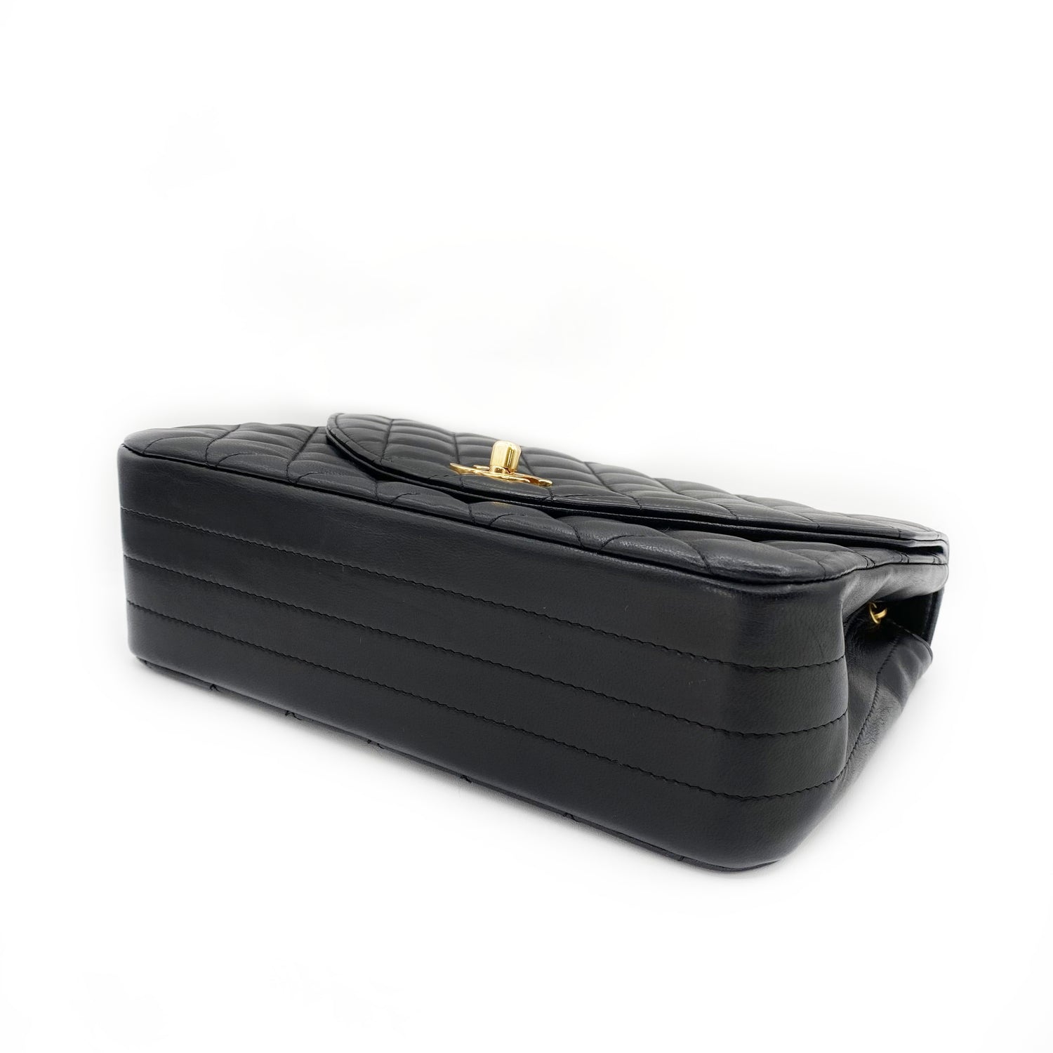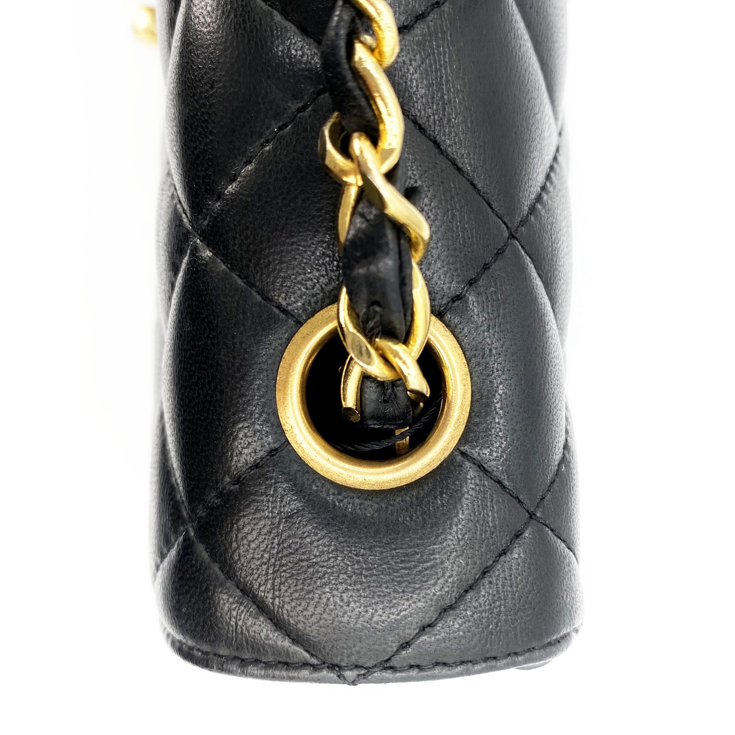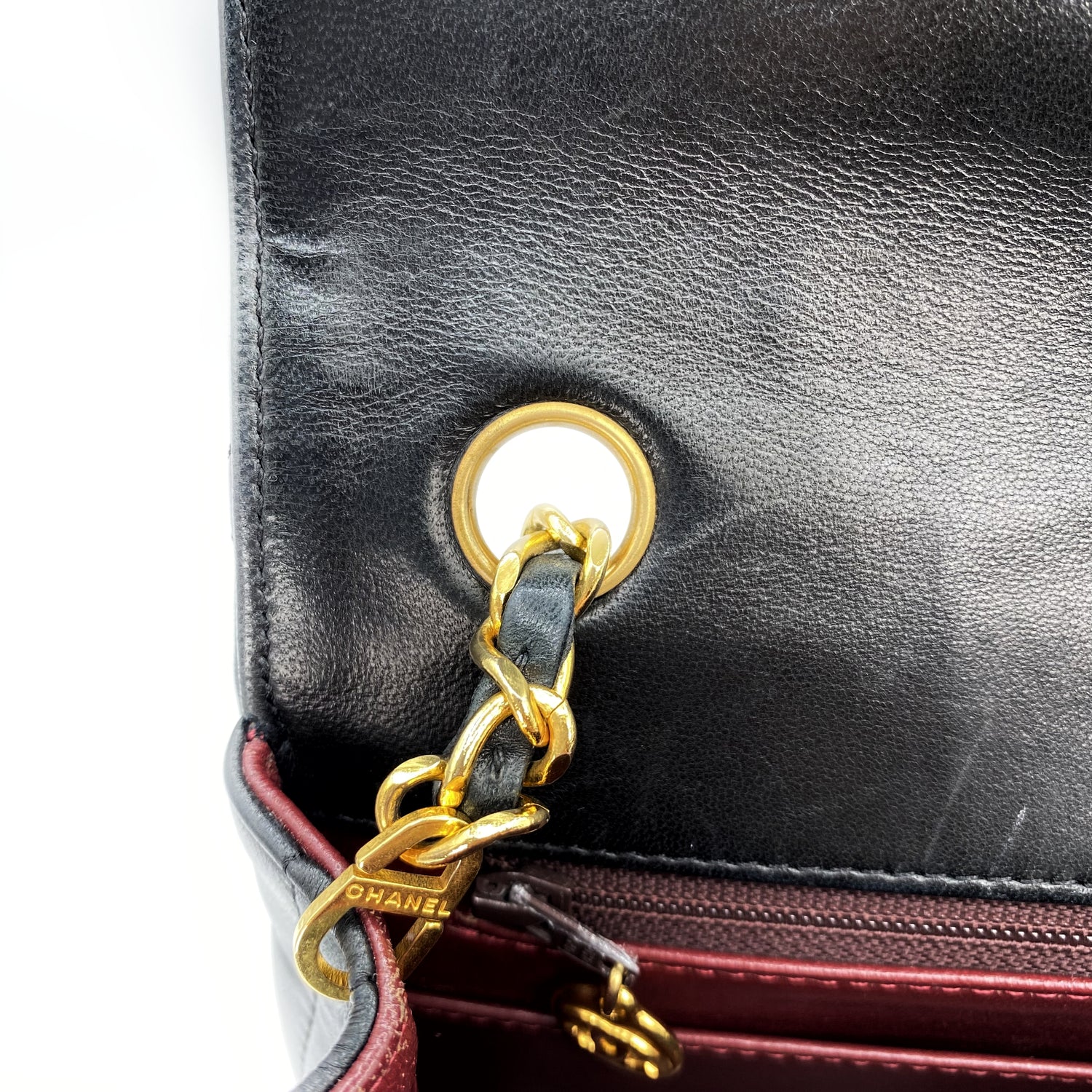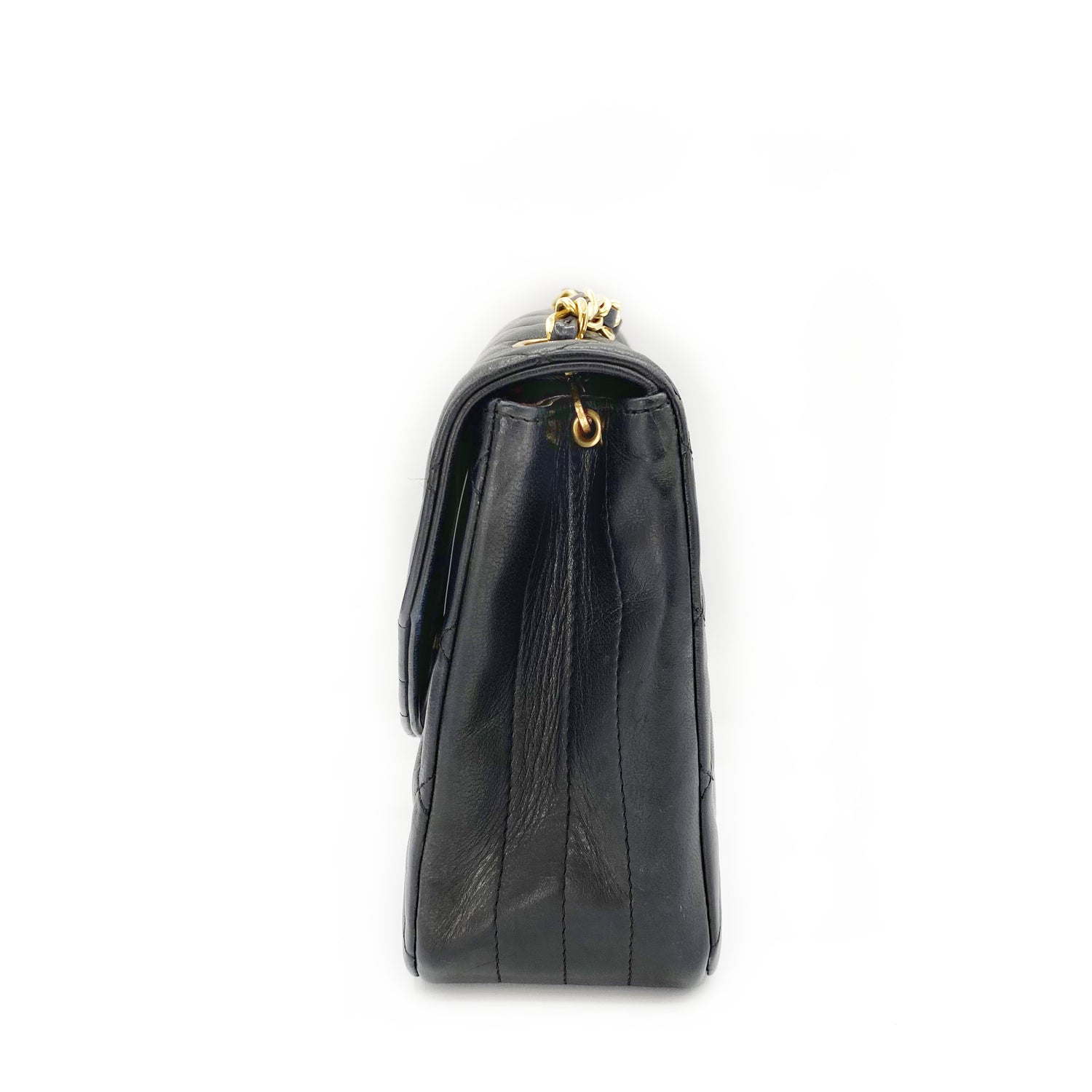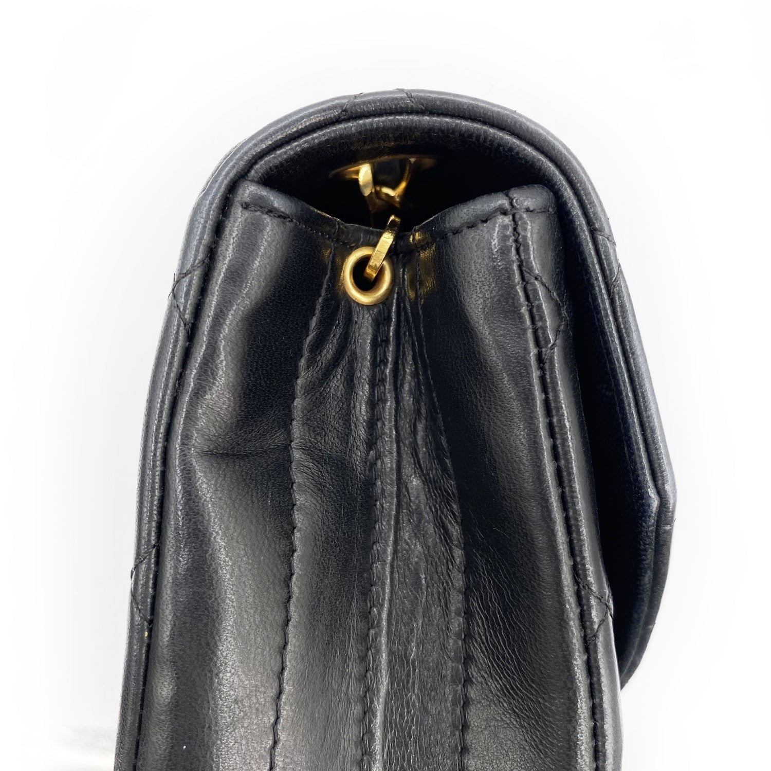 Julio is a vintage Chanel 1 series matelasse half moon chain black lambskin with seal and card