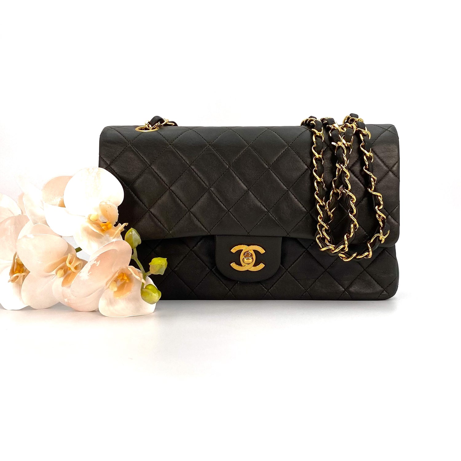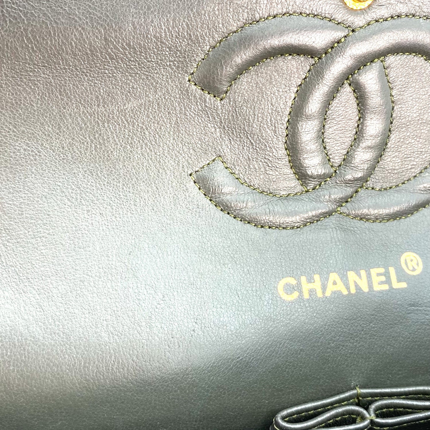 Raven is a vintage Chanel 1 series medium classic flap khaki lambskin with seal and card