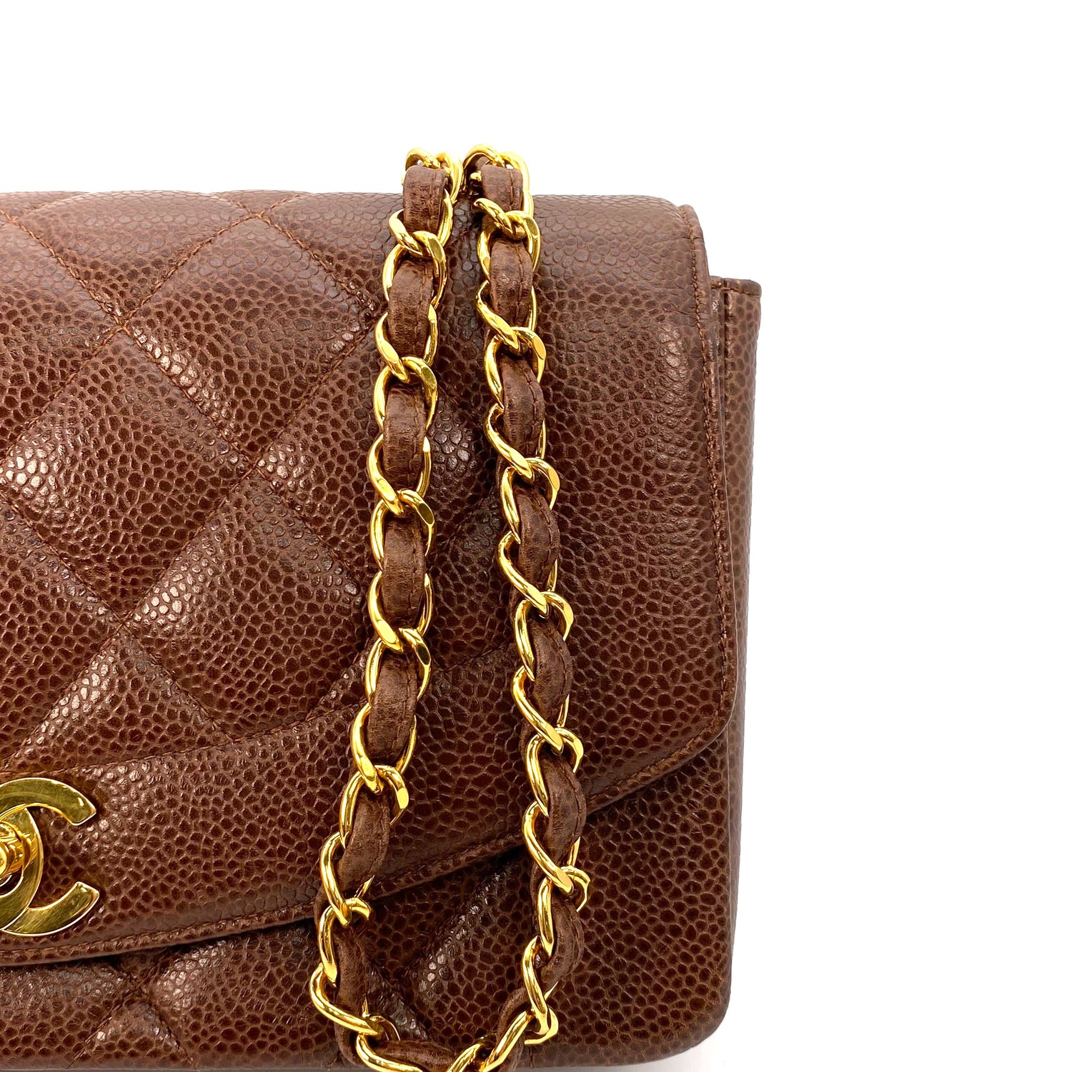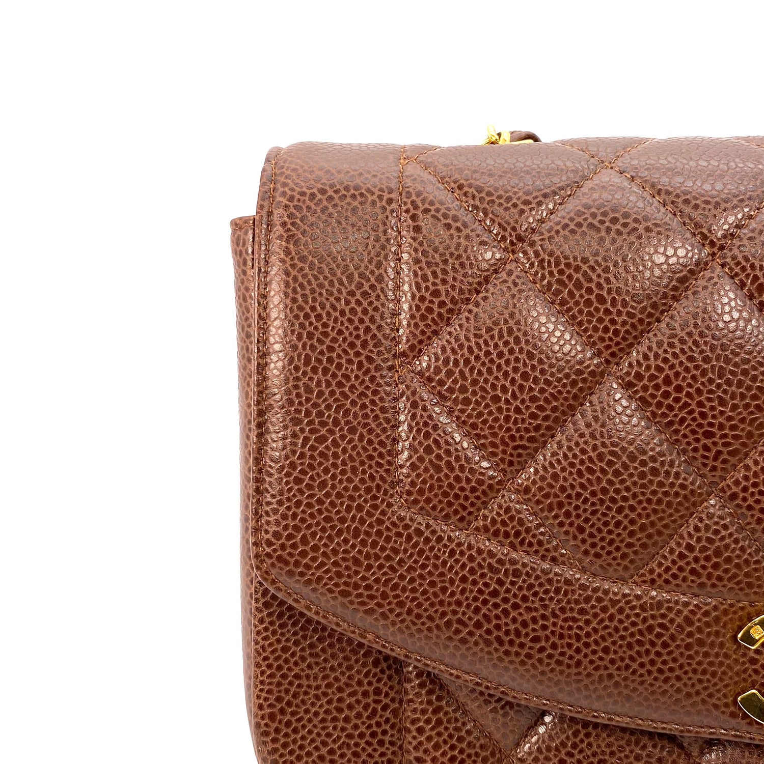 Rina is a vintage Chanel 2 Series Small Diana Brown Caviar with seal only