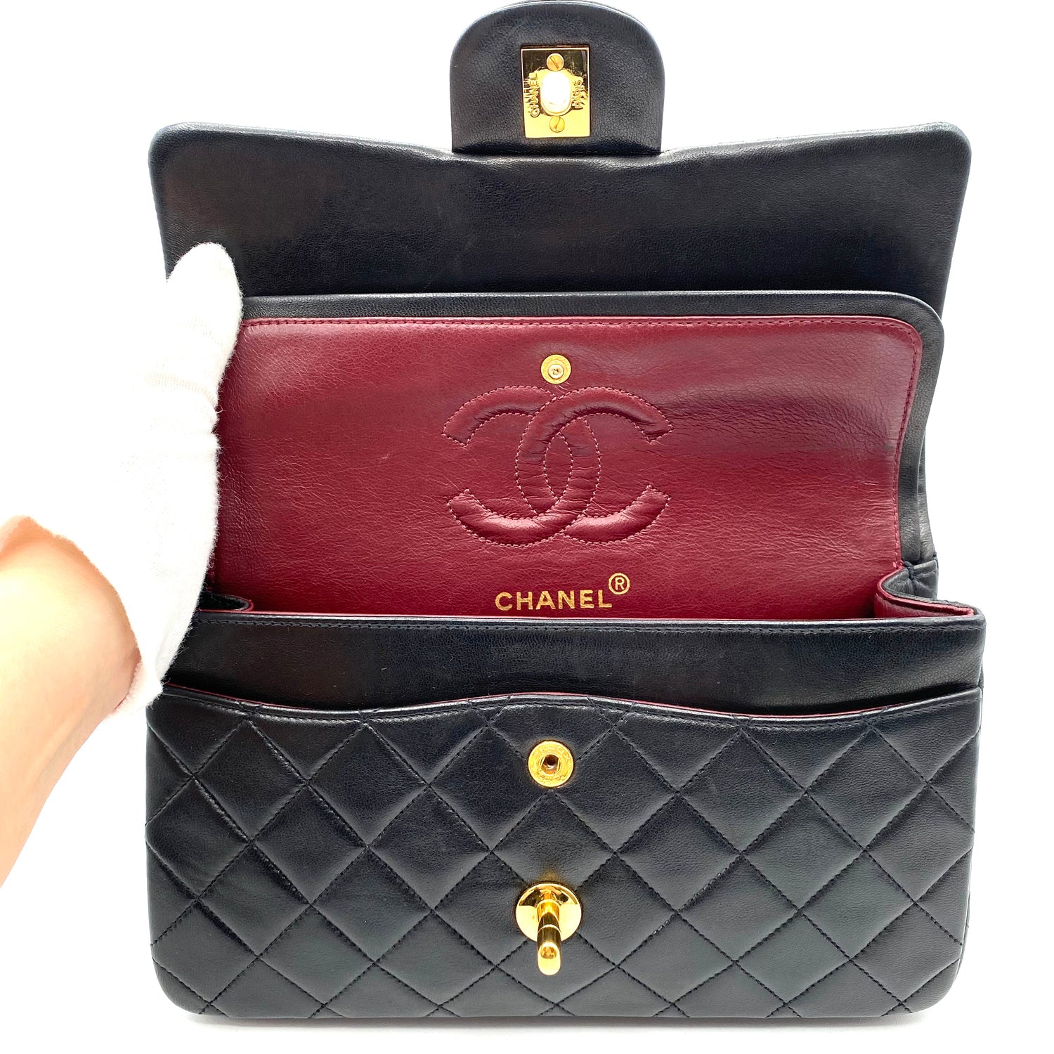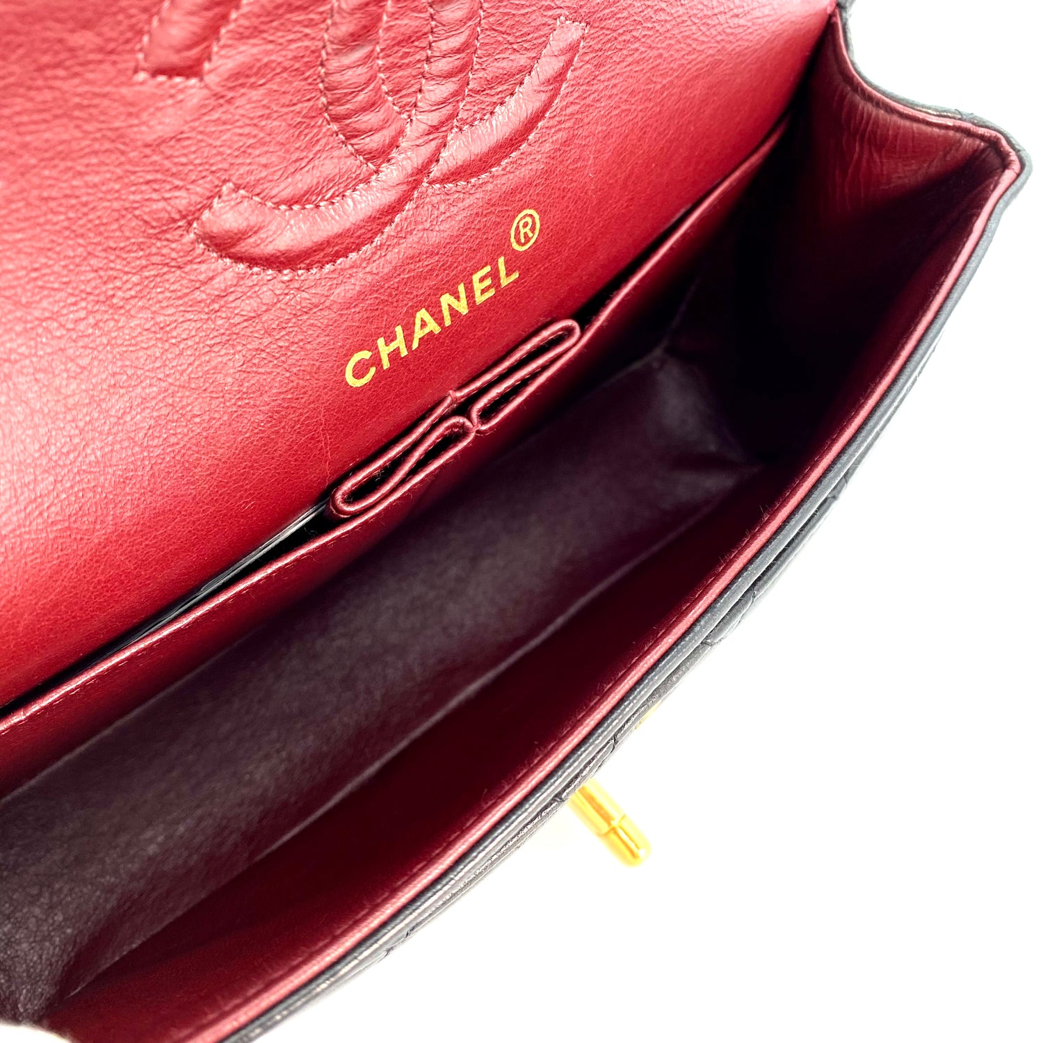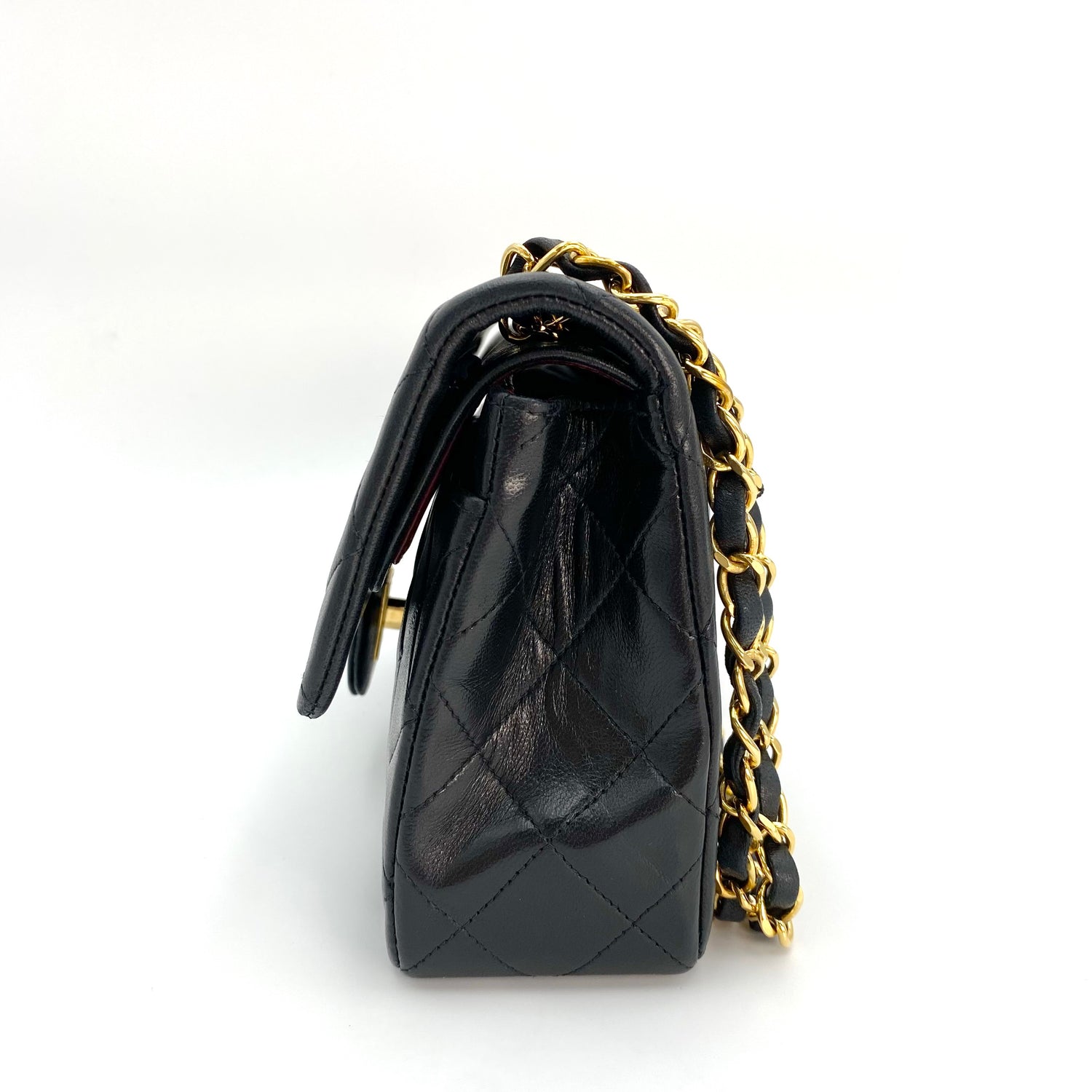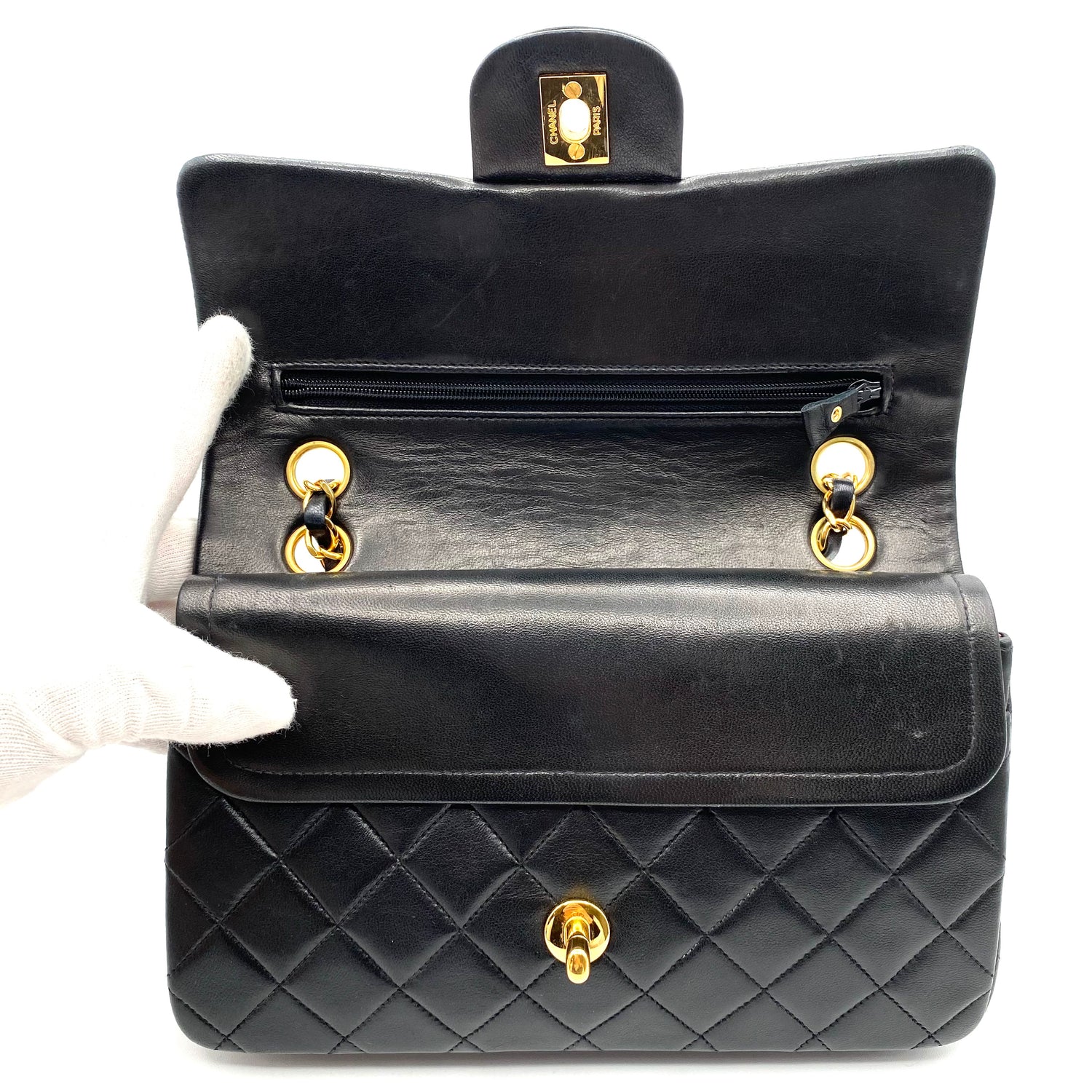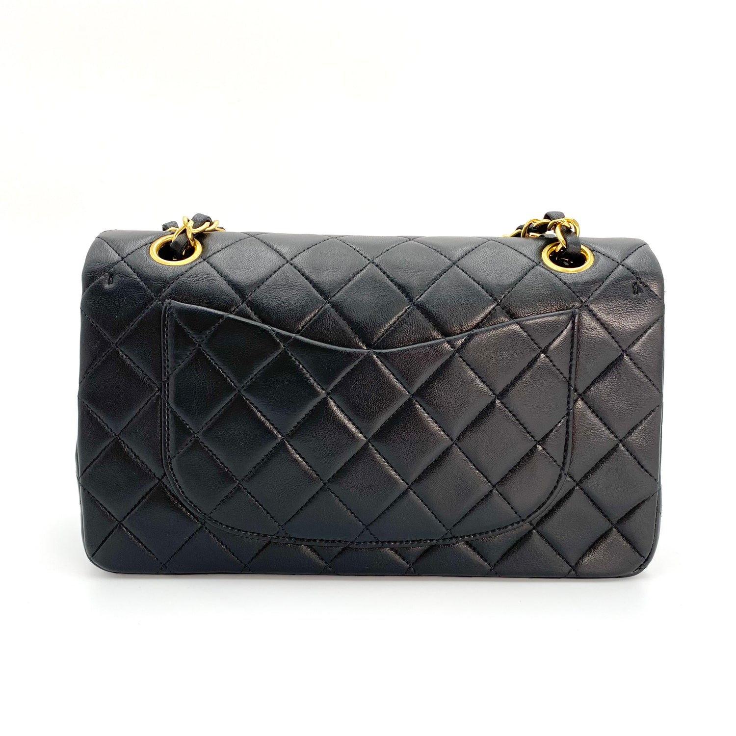 Shawn, Vintage Authentic Chanel 2 series small black classic flap with seal and card
