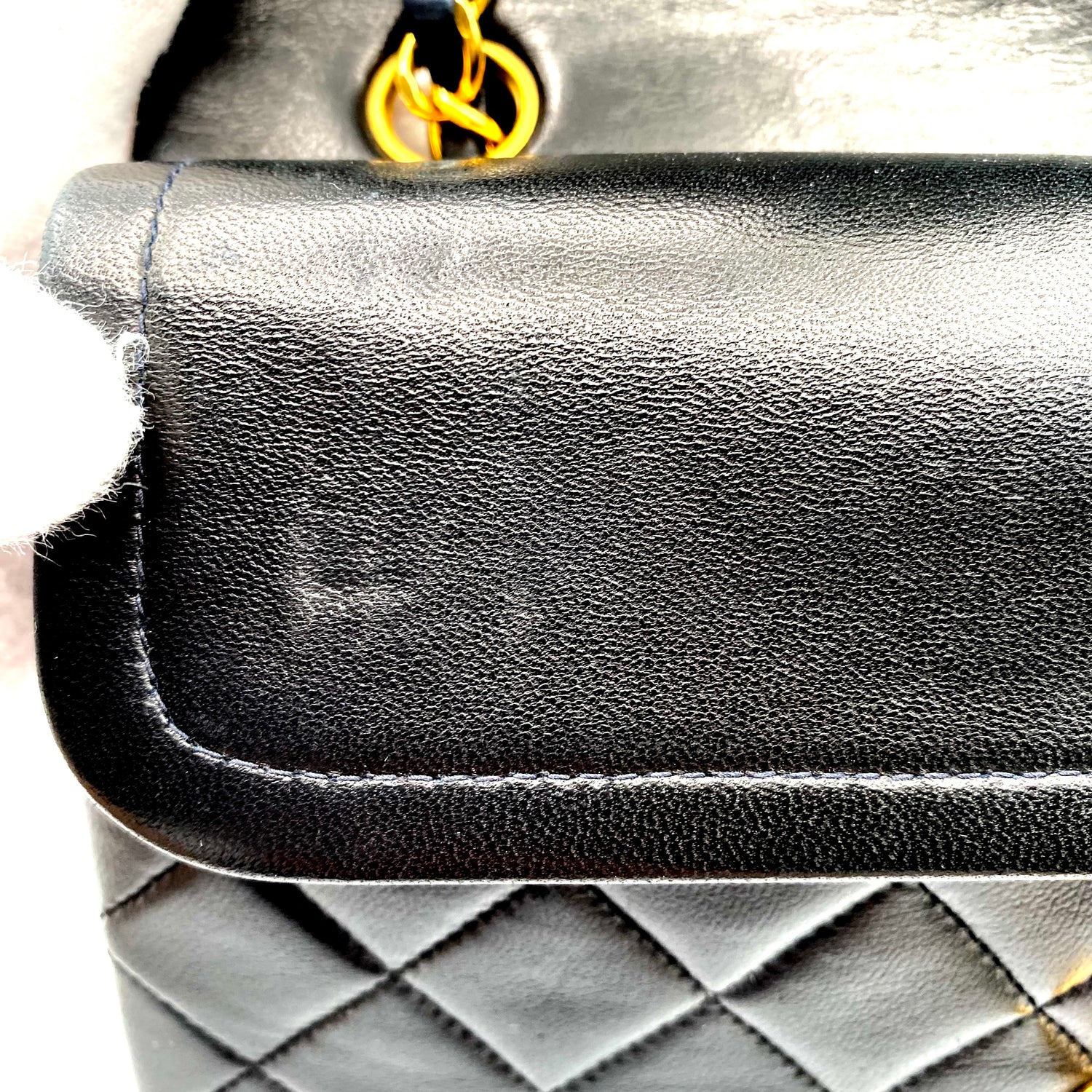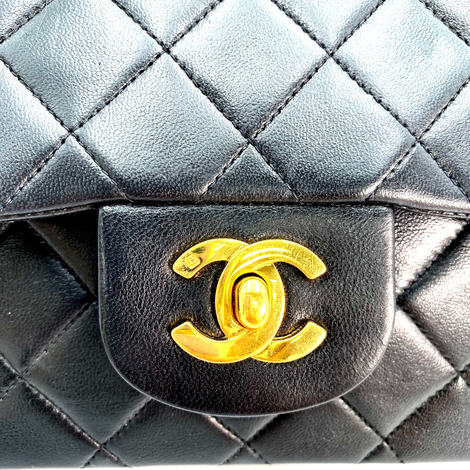Shawn is a vintage Chanel 2 series small black classic flap with seal and card