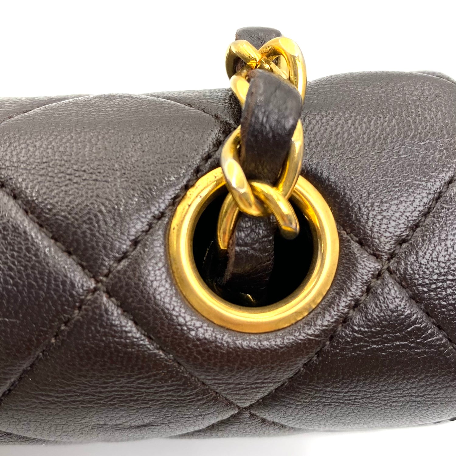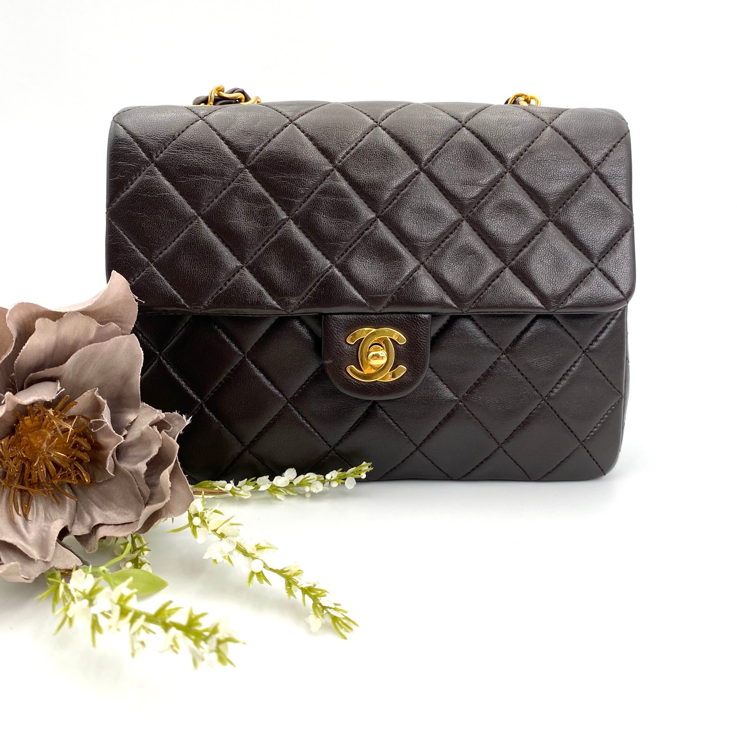 Wayman is a vintage Chanel 2 series 20cm dark chocolate brown lambskin mini with sticker and card